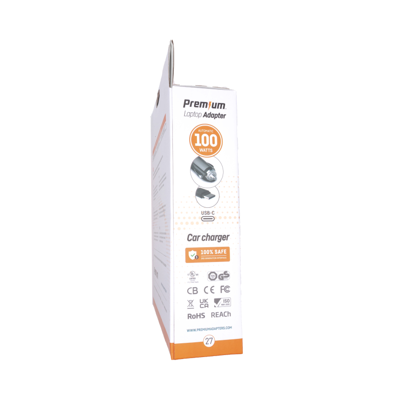 (27) Premium RETAIL USB-C Auto adapter 100 Watt