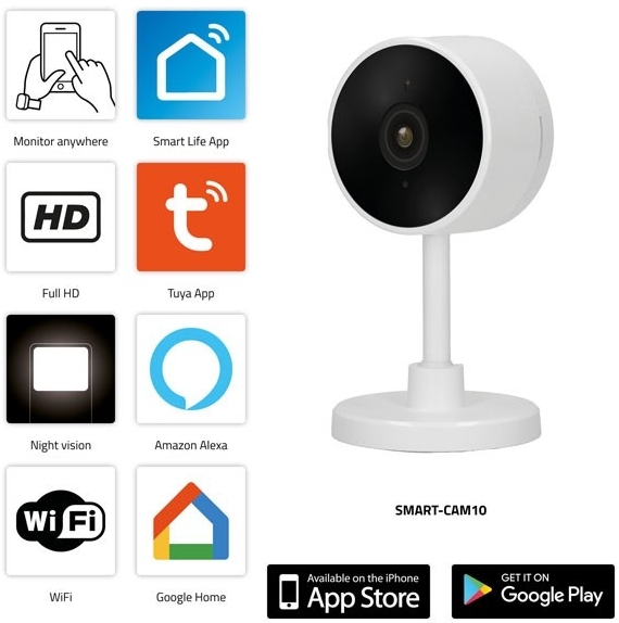 Met deze handige SMART-CAM10 Smart Wi-Fi- camera van Alecto heb je altijd en overal zicht over wat er gebeurt in huis. Deze SMART-CAM10 is een handige camera die wordt aangesloten op het Wi-Fi-netwerk van je huis, er is dus geen bridge of gateway nodig om deze smartcamera te gebruiken. Hierdoor heb je altijd en overal toezicht met je smartphone of tablet.