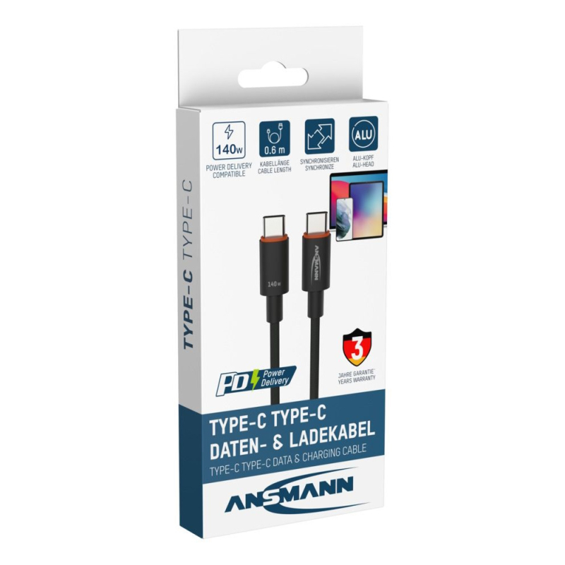 Ansmann 140 Watt USB-C naar USB-C braided 60 cm