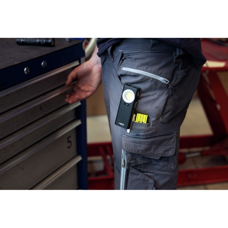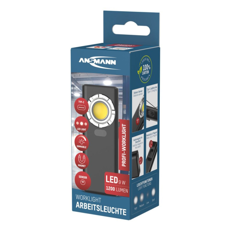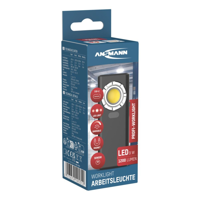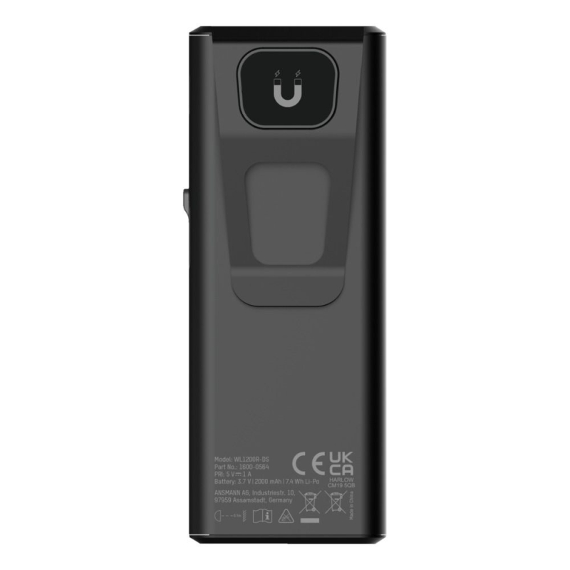 Technische Details :- LED : 9 watt COB LED- Levensduur LED : > 10000 uur- Helderheid : 3500 Lux- Lumen : 1200 – Mode 1 : 10 meter, 80 lumen, 200 Lux, 7 uur- Model 2 : 35 meter, 600 lumen, 1500 Lux, 5.5 uur- Mode 3 : 55 meter, 1200 lumen, 3500 Lux,1.5 uur- Kleurtemperatuur : 5500 – 7500 K (index CRI Ra > 67)- Beschermingsklasse : IK07 / IPX6- Tijdsduur bij volle accu : 3 uur- Accu : Li-Po 3.7 volt, 2000mAh, 7.4Wh- USB-C aansluiting voor lader- Behuizing : Aluminium + ABS + PC- Magneet aan de bovenkant