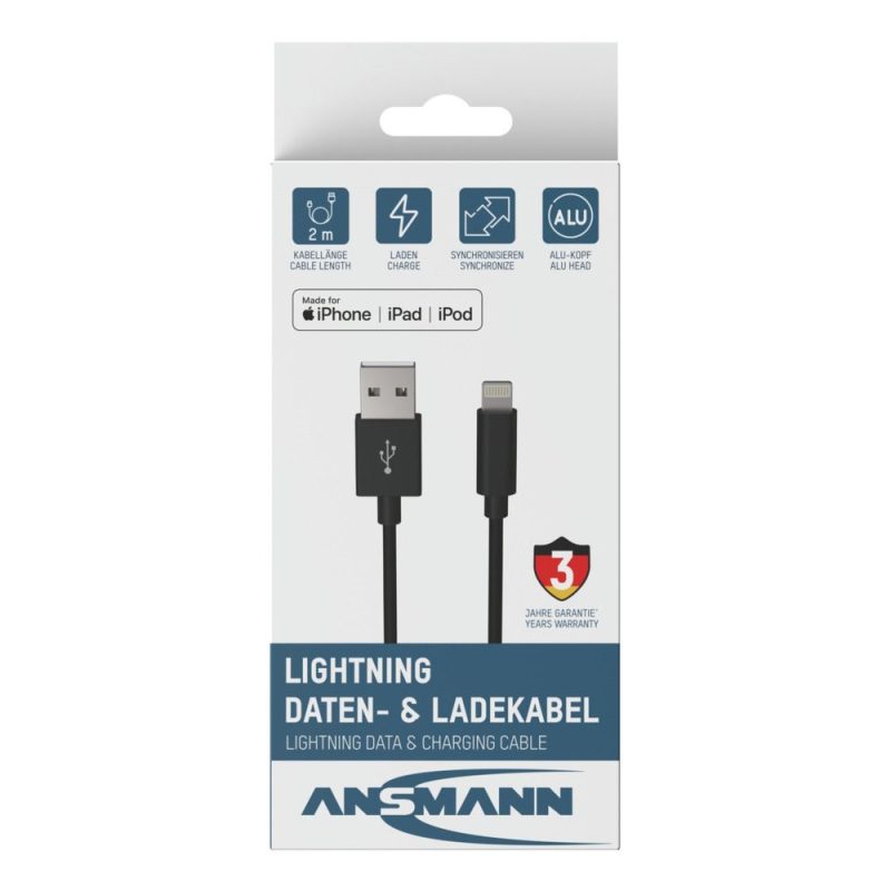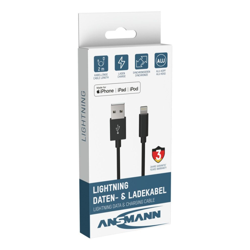 Ansmann USB-A naar Lightning kabel 200 cm aantal