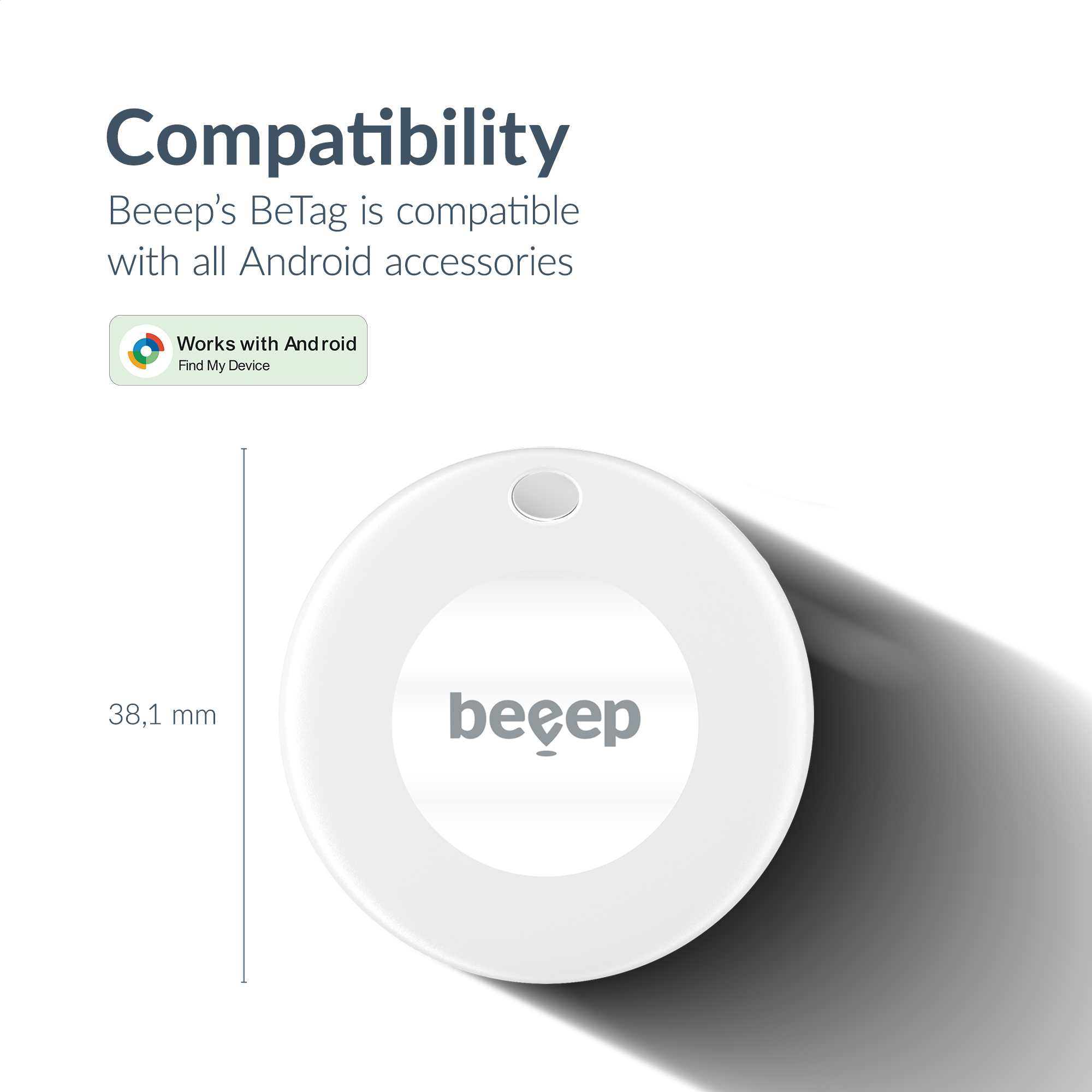 Met zijn ronde vorm en strakke afwerking past de Beeep BeTag moeiteloos bij al je dagelijkse accessoires. Klein genoeg om onopvallend te blijven, maar krachtig genoeg om je spullen altijd binnen handbereik te houden.