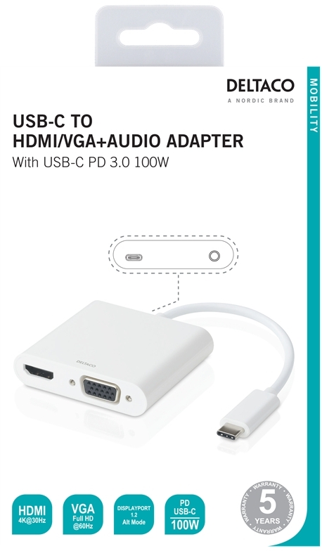 - 100 W USB PowerDelivery 3.0 (20 V / 5 A)
