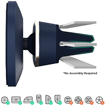 De iOttie Velox Air Vent Mount is een magnetische telefoonhouder voor MagSafe compatible iPhones en cases. Hou je toestel tegen de Velox Mount aan en het klikt zichzelf dankzij de magneten stevig vast aan de houder. De houder installeer je eenvoudig in het luchtrooster door de uitsteeksels op één van de lamellen in het luchtrooster te schuiven. De siliconen laag zorgt ervoor dat de houder zich goed vastklemt in het rooster. Jouw toestel kan je in elk gewenste richting draaien voor de ideale kijkhoek tijdens het rijden door het kogelgewricht.
