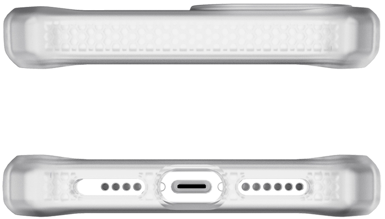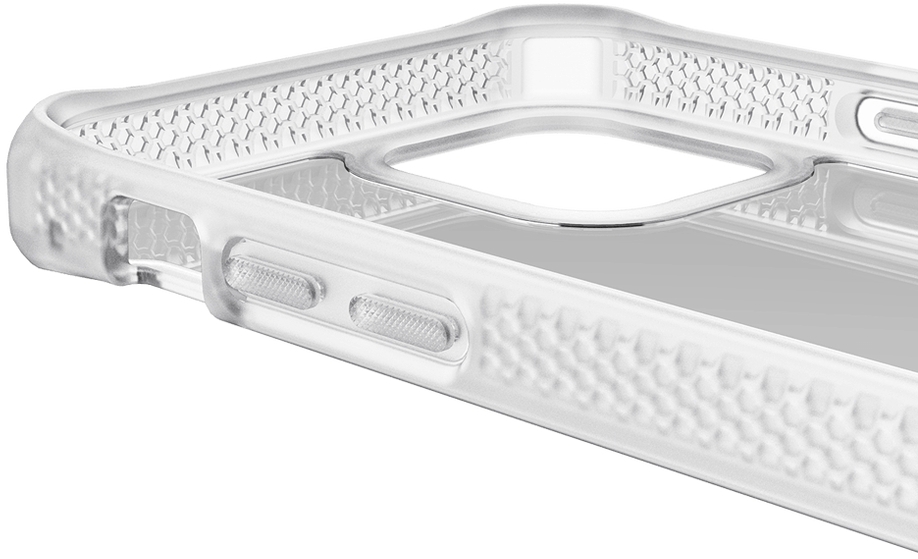 Voor de Hybrid Frost heeft Itskins gebruik gemaakt van een Hexotek bumper in een matte kleur in combinatie met een transparante achterkant van hard polycarbonaat die nooit vergeeld De Hybrid Frost heeft Pocket Air technologie, deze legt een buffer tussen uw smartphone en de case. De Hybrid Frost is één van de dunste cases met een 3 meter drop proof certificaat. De case heeft opstaande randen die uw camera en scherm beschermen.