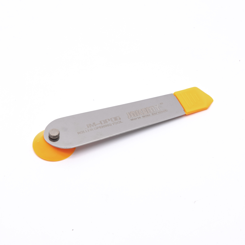 Jakemy JM-OP06 mini veiligheids opening gereedschap- Gemaakt van RVS- Dubbelzijdig Aan 1 kant voorzien van een wiel gemaakt van speciaal materiaal om schade tijdens het openen zo veel mogelijk te beperken.Andere zijde voorzien van gepatenteerd speciaal ontworpen wig voor het openen van diverse apparatenVoor het gemakkelijk openen van bijvoorbeeld mobiele telefoons of schermen van iPhone, iPad, iMac, Macbooks en notebooks