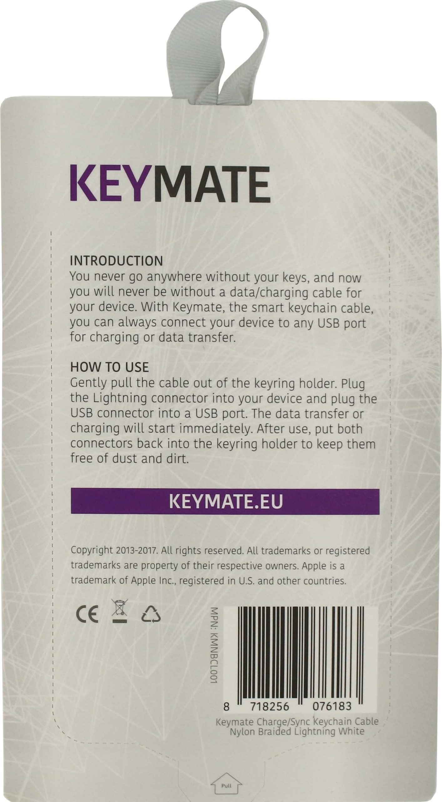 Keymate Charge/Sync Keychain Cable Nylon Braided Lightning White