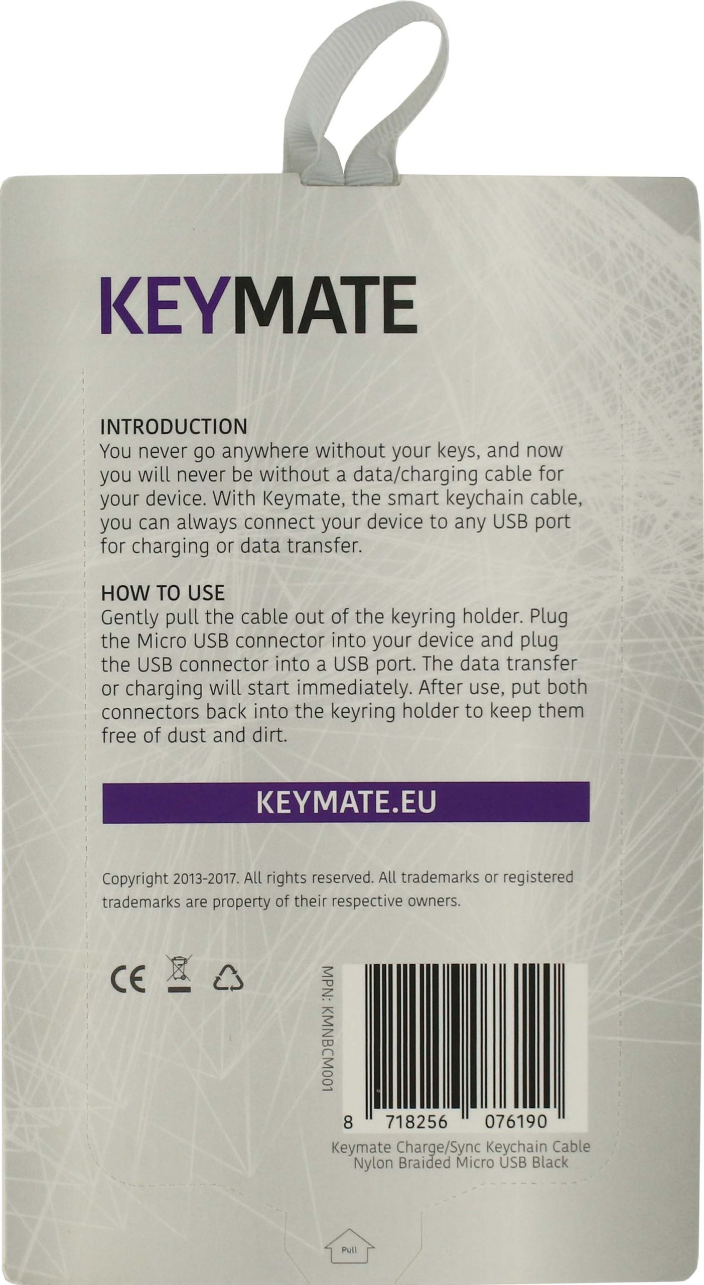 Altijd een kabel bij de hand, waar u ook bent. U neemt uw sleutelbos namelijk overal mee naar toe als u het huis verlaat. De KeyMate Cable is een kabel die speciaal gemaakt is voor aan sleutelbossen. Zo kunt u overal uw apparaat opladen of gegevens overzetten naar een computer. De KeyMate heeft aan de ene kant een 3.0 USB connector en aan de andere kant een Micro USB connector. Beide uiteinden zijn in de houder te plaatsen, waarmee u de kabel aan uw sleutelbos kunt hangen. De kabel zelf is van geweven nylon en daarmee bijzonder sterk en duurzaam. De kabel heeft een lengte van 15 centimeter.