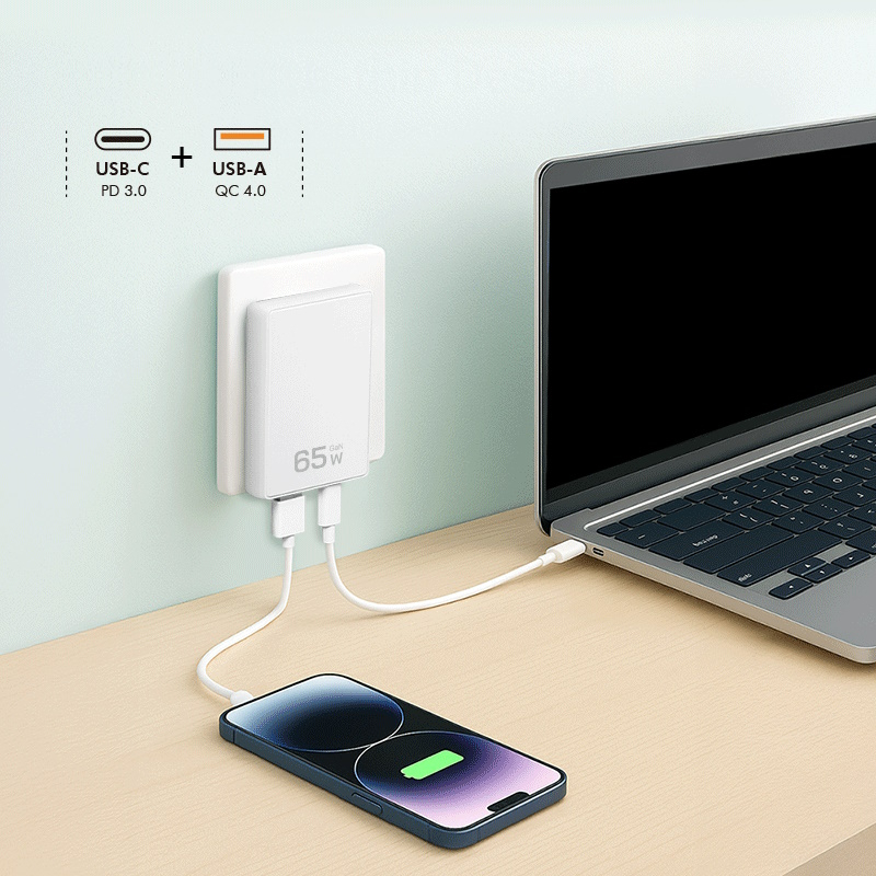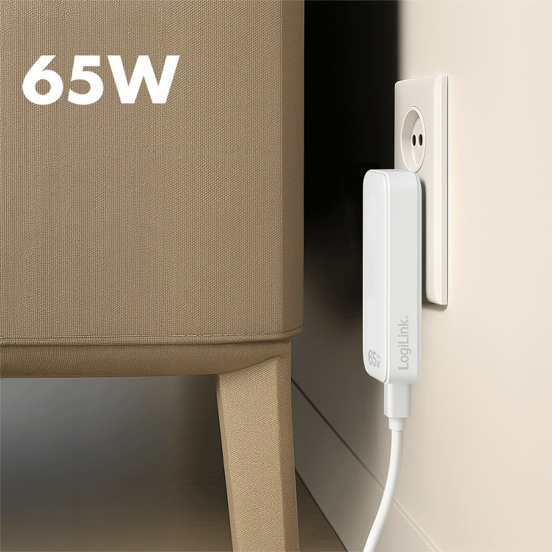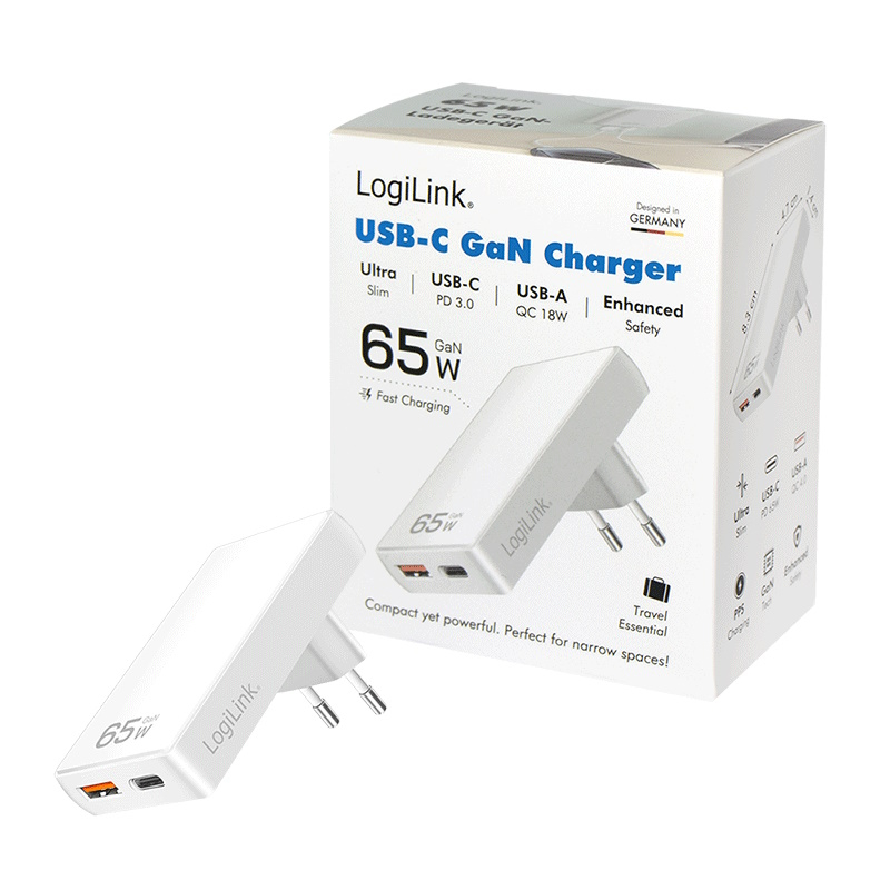 LogiLink 65 Watt USB-C + 18 watt USB-A lader Ultra Flat