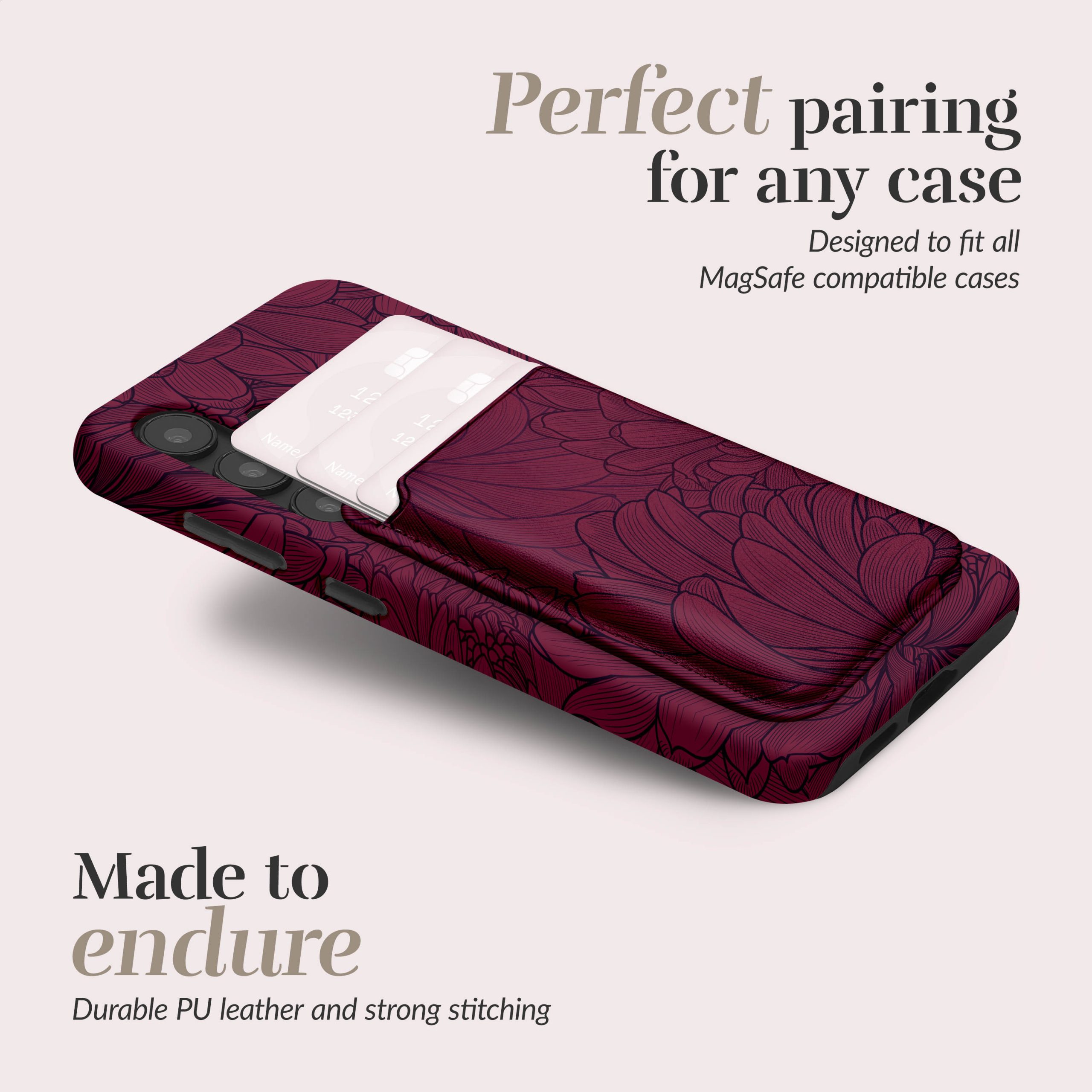 Dankzij de krachtige MagSafe-compatibele magneten blijft de kaarthouder moeiteloos en stevig vastzitten aan je telefoon of MagSafe-case. Zo ben je verzekerd van een betrouwbare bevestiging, zelfs bij dagelijks gebruik.