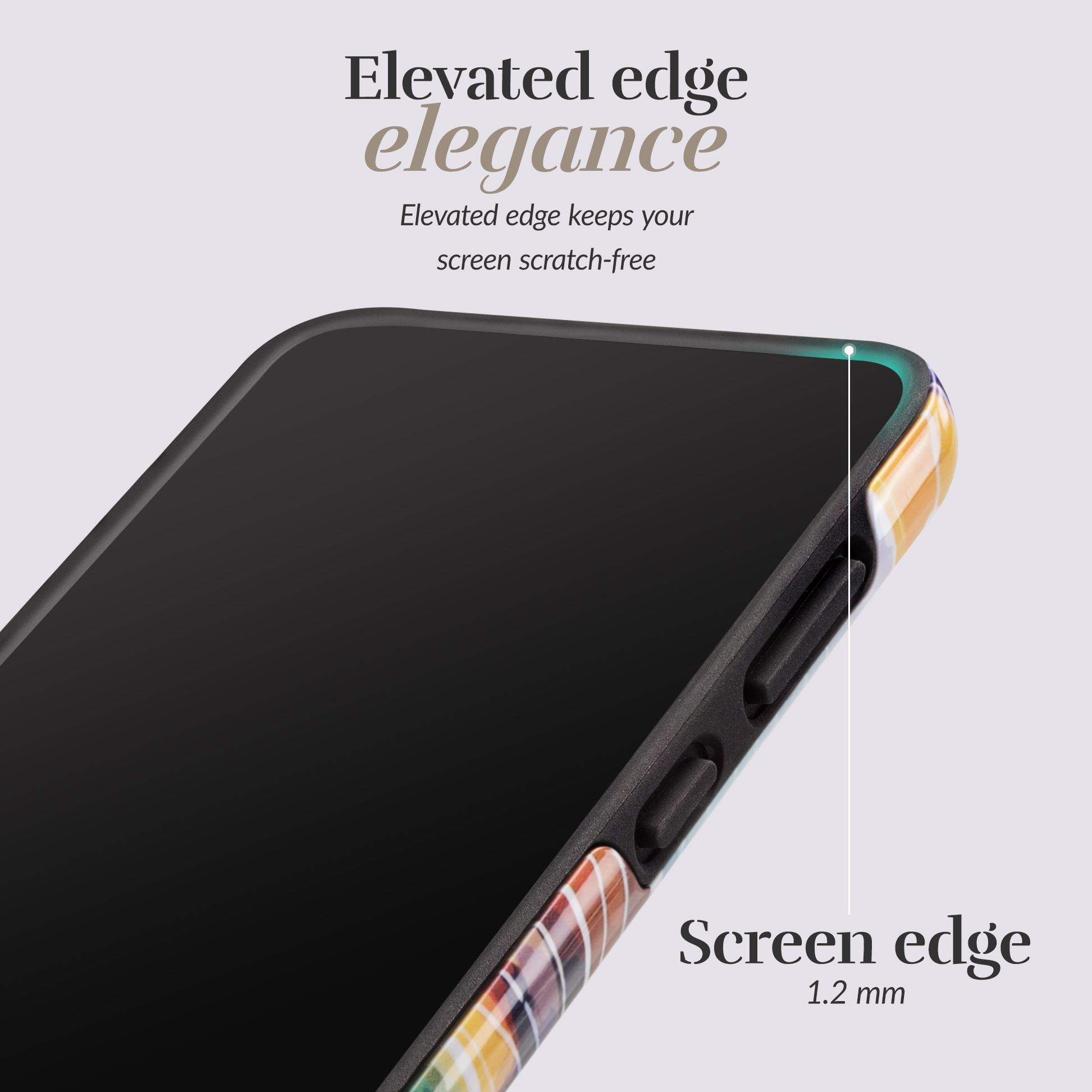 • Opstaande randen om je display te beschermen