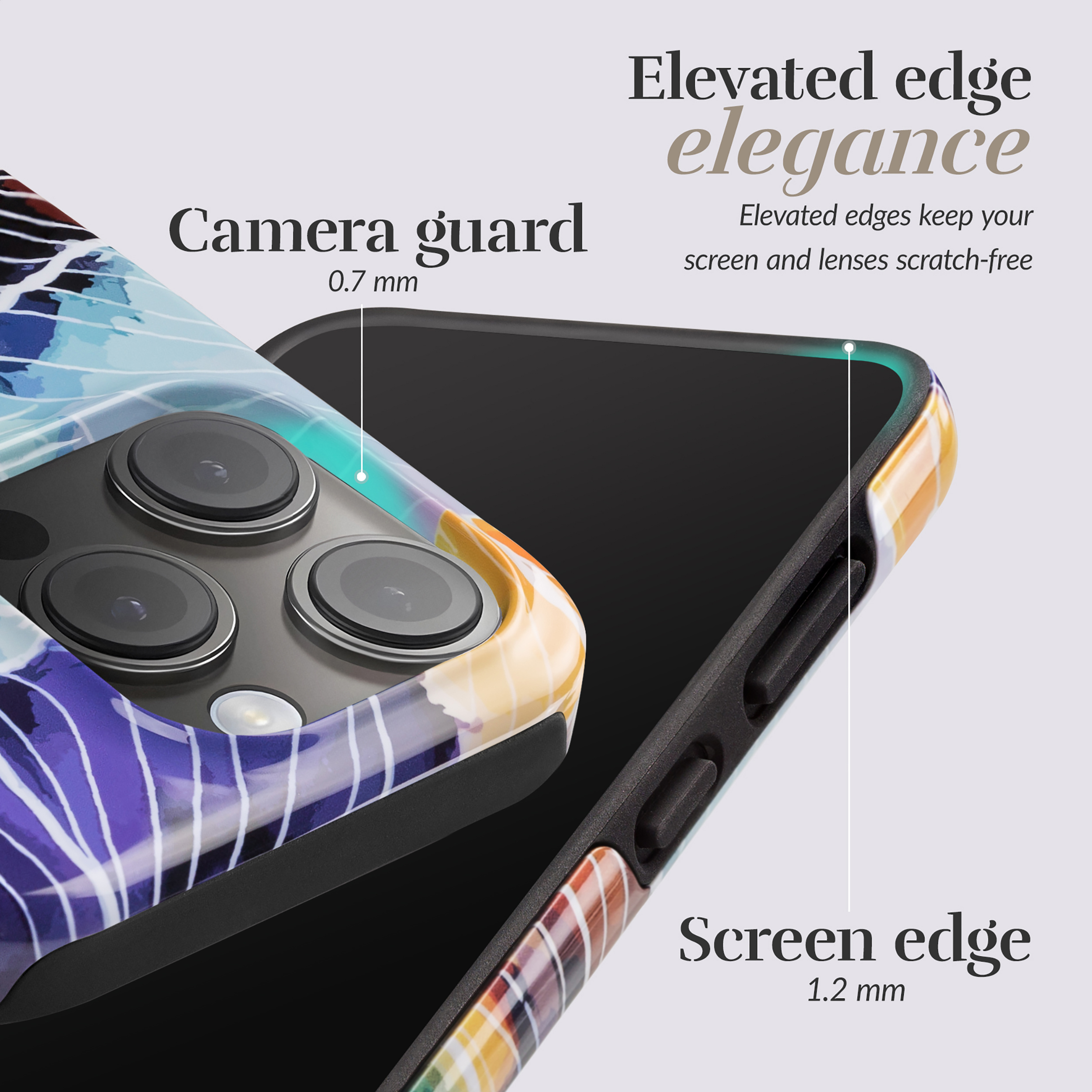 • Opstaande randen om je display te beschermen