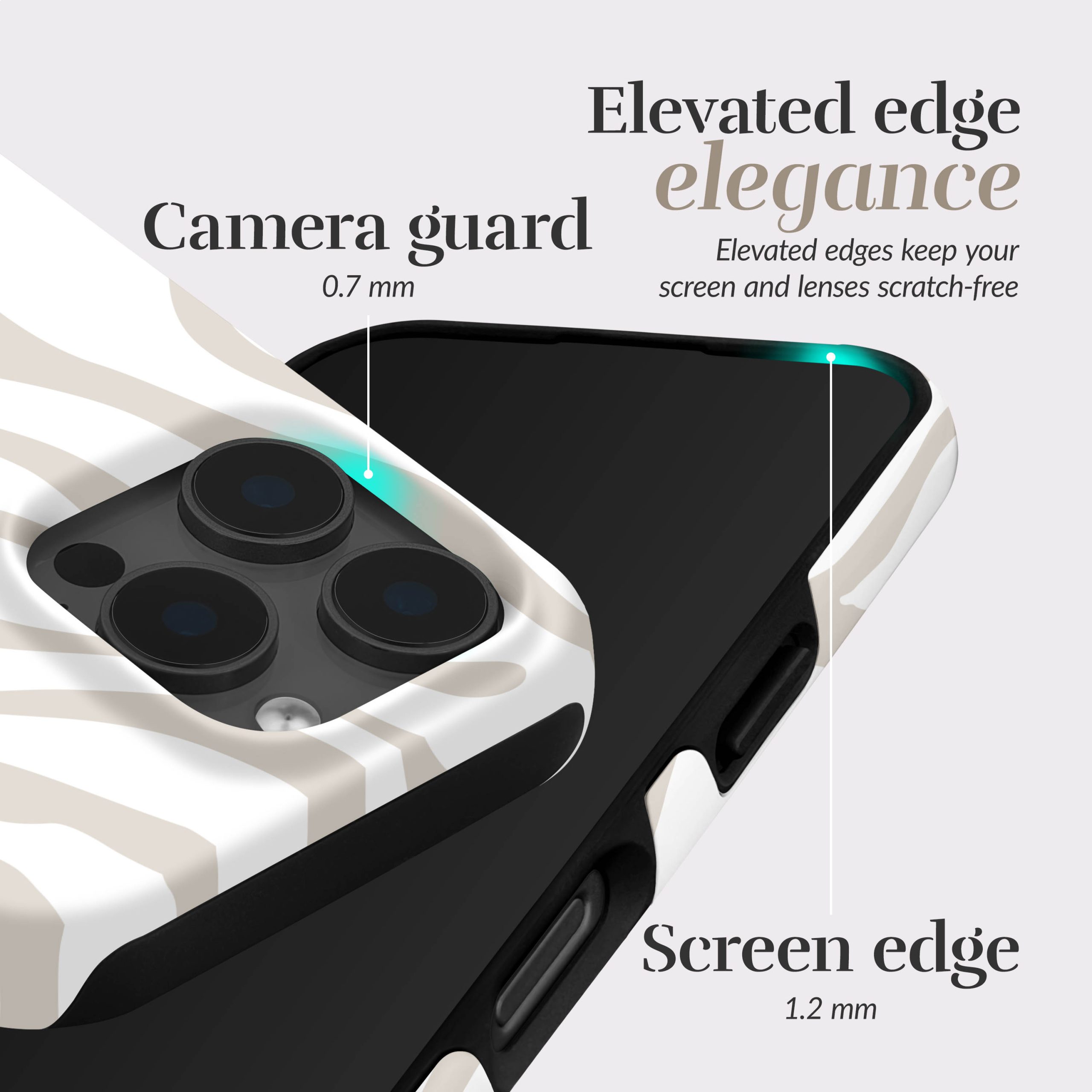 • Opstaande randen om je display te beschermen