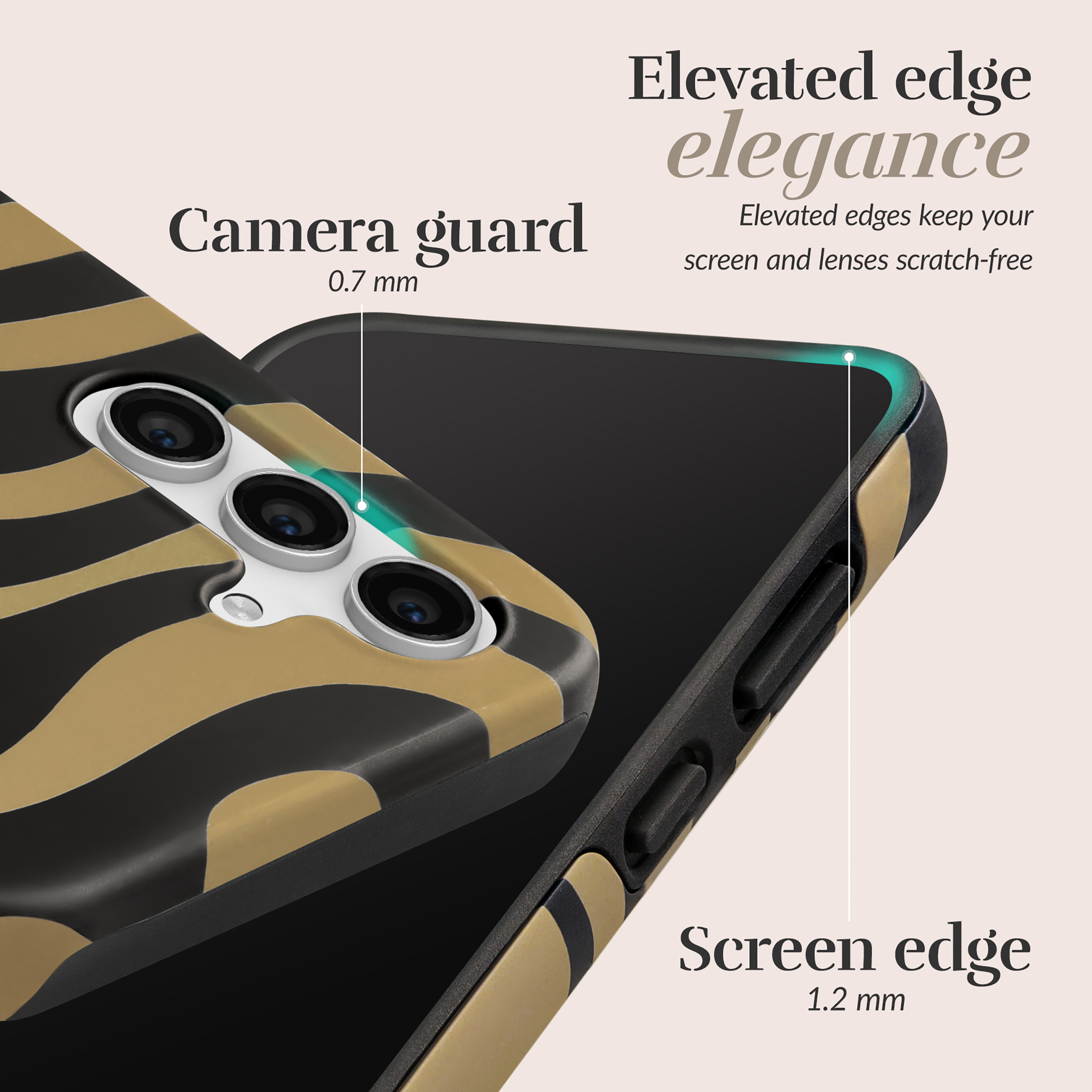 • Opstaande randen om je display te beschermen