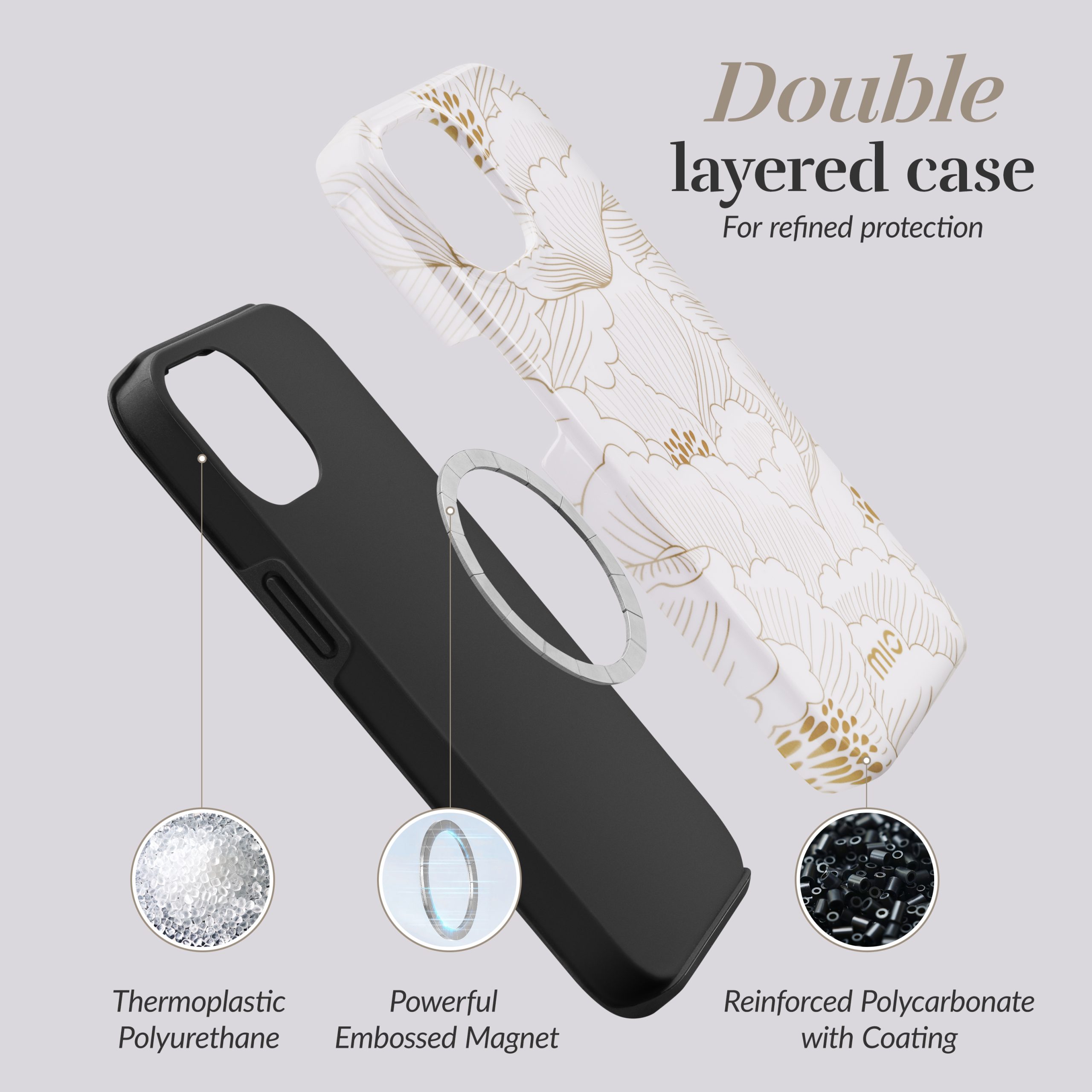 Mio Cases zijn niet zomaar gewone hoesjes, ze zijn een fashion statement voor je telefoon! Bestaande uit twee delen, een flexibel TPU voor schokabsorptie en een stevige schil van polycarbonaat voor maximale bescherming, bieden deze MagSafe-compatible cases je smartphone de ultieme bescherming tegen vallen. Met Mio's dropprotectie én de toegevoegde functionaliteit van MagSafe kun je met een gerust hart je dag beleven, wetende dat je telefoon veilig is, hoe druk of wild het soms ook wordt.