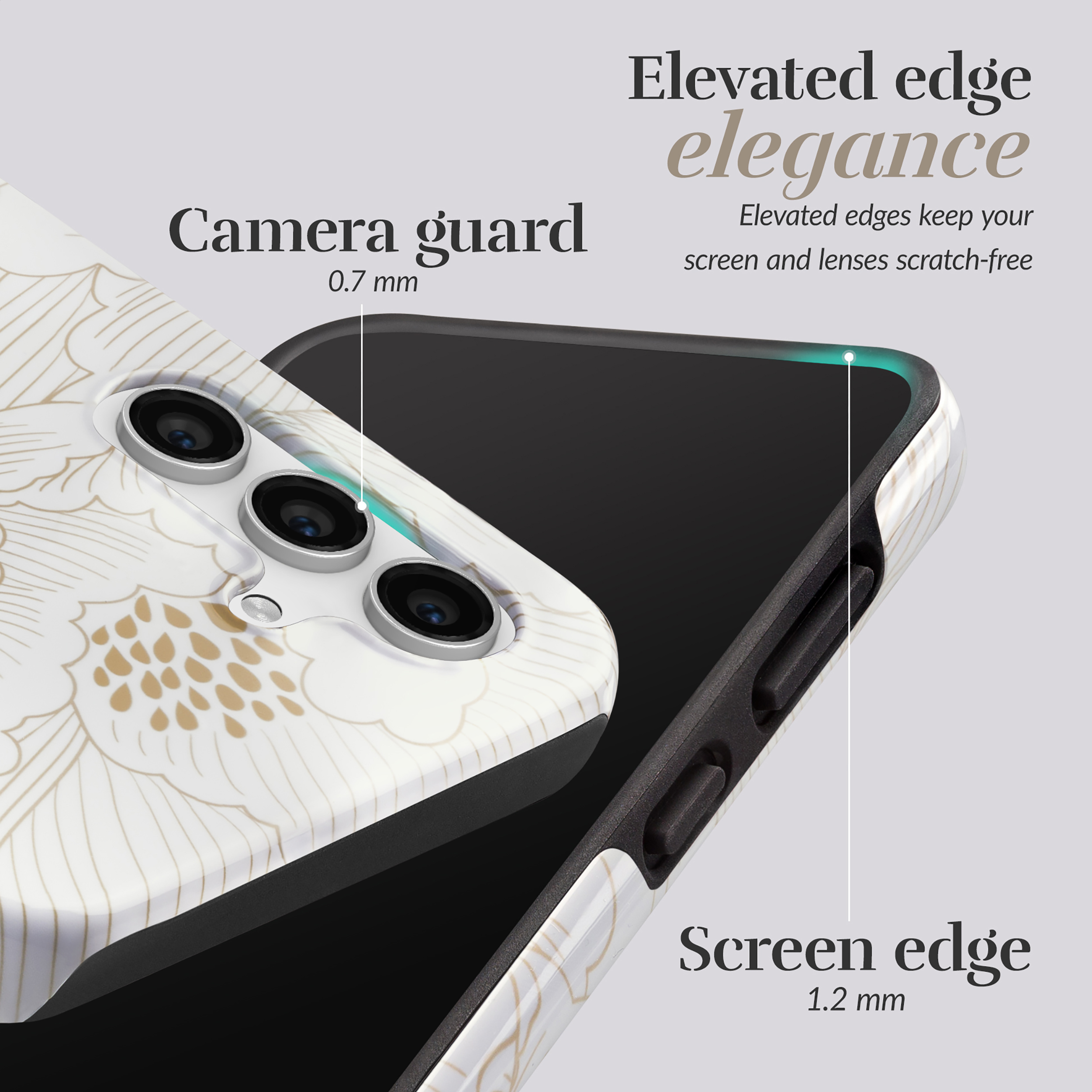 • Opstaande randen om je display te beschermen