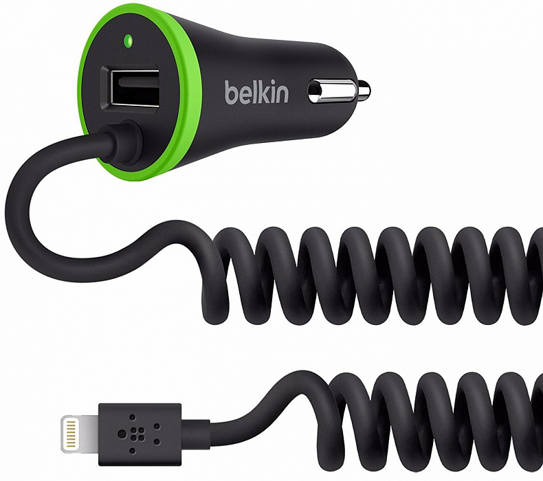 Mob Belkin Car Charger With Usb Port + Coiled Lightning Connector 3.4A Black