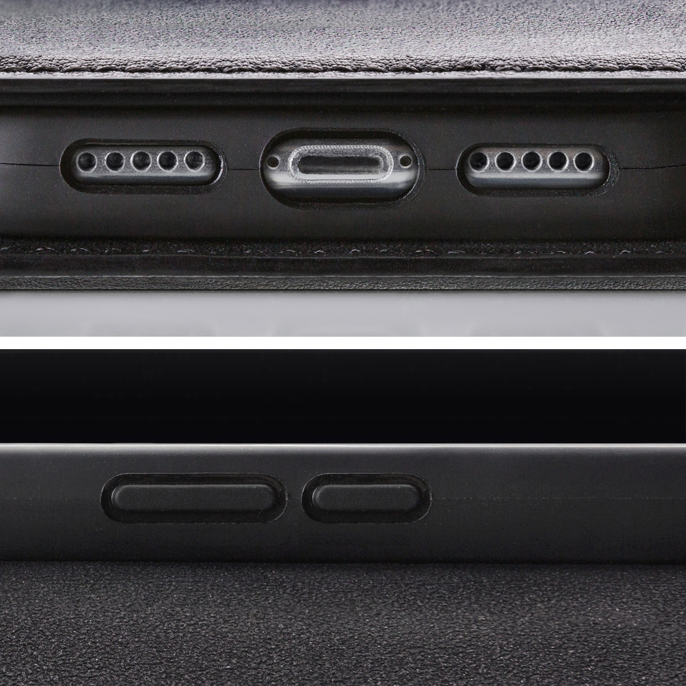 De Clutch case heeft een hoge mate van afwerking en is, door zijn samenstelling, een unieke case. De binnenkant van de wallet is gemaakt van zacht microvezel materiaal. Ook aan de binnenkant vind je 3 vakjes voor pasjes en een groter vak voor bijvoorbeeld papieren. Deze vakjes hebben een krokodilleer design wat ook terug te vinden is op de cover. Op de buitenkant zit een ruim vak voor bijvoorbeeld een sleutel.