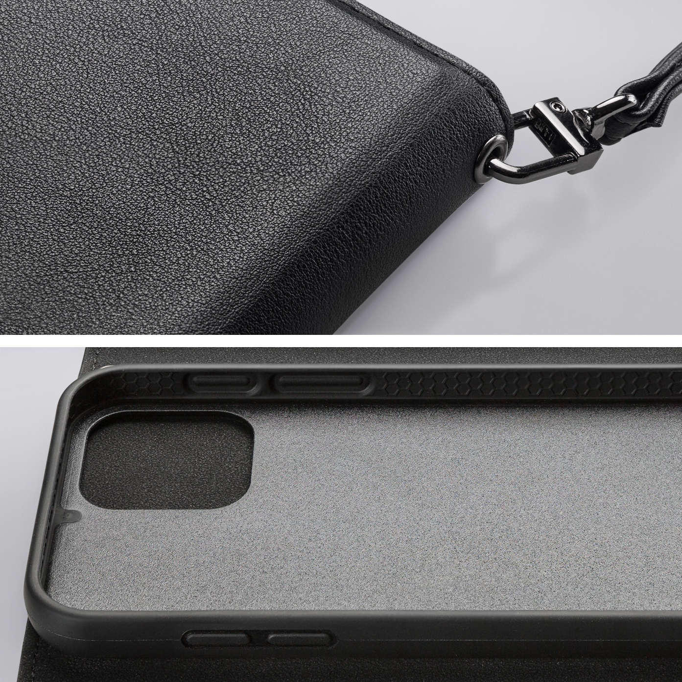De Clutch case heeft een hoge mate van afwerking en is, door zijn samenstelling, een unieke case. De binnenkant van de wallet is gemaakt van zacht microvezel materiaal. Ook aan de binnenkant vind je 3 vakjes voor pasjes en een groter vak voor bijvoorbeeld papieren. Deze vakjes hebben een krokodilleer design wat ook terug te vinden is op de cover. Op de buitenkant zit een ruim vak voor bijvoorbeeld een sleutel.