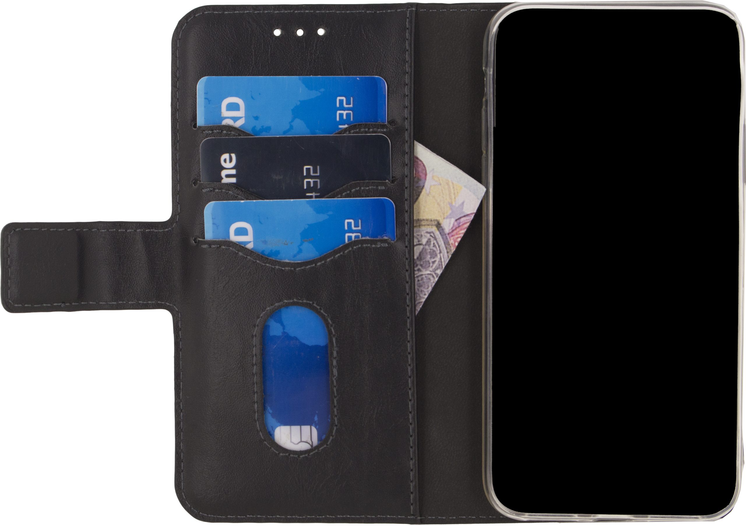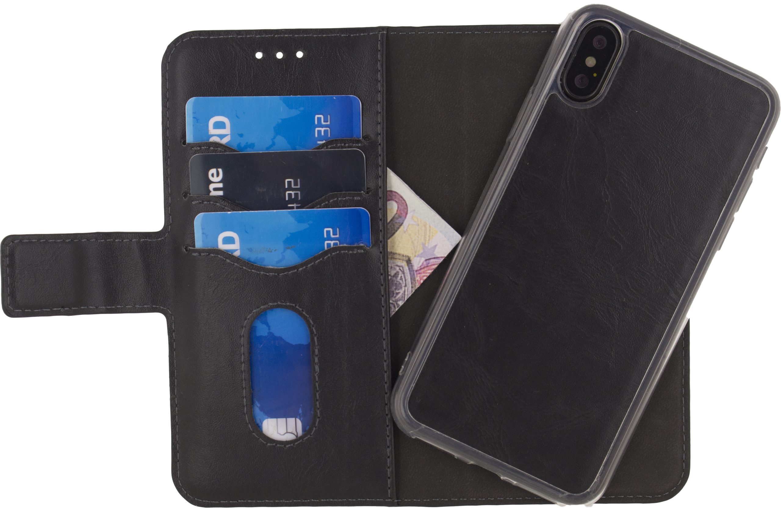 Deze wallet case werkt perfect samen met de Mobilize Magnet Air Vent Holder.