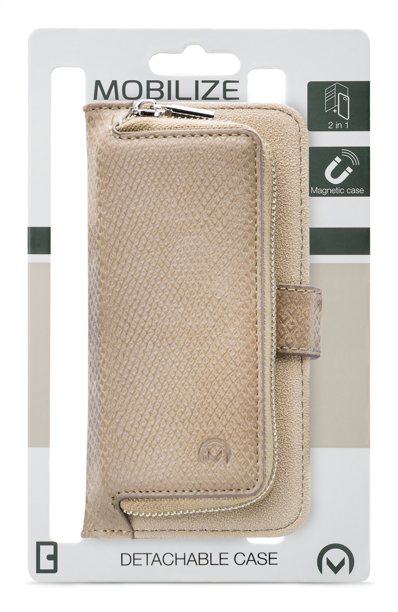 Met de luxueuze Mobilize 2in1 Gelly Wallet Zipper Case heeft u altijd al uw spullen bij elkaar voor een dagje winkelen of een avond uit. Binnenin de case zitten drie vakjes voor uw ID kaart, bankpas of klantenkaarten. Eén van die vakjes heeft een handige slide functie om uw meest gebruikte pas nog makkelijker uit het vakje te krijgen. Er zit ook een groter vak voor papiergeld of andere papieren in. De voorkant van de modieuze Gelly Wallet Zipper Case is een mooi afgewerkte portemonnee met rits. Perfect voor uw sleutels en voor spullen die u én snel bij de hand én veilig opgeborgen wil hebben. Het elegante polsbandje, het subtiele lizard motiefje en de zilverkleurige sluitingen maken van deze case een echt fashion item.