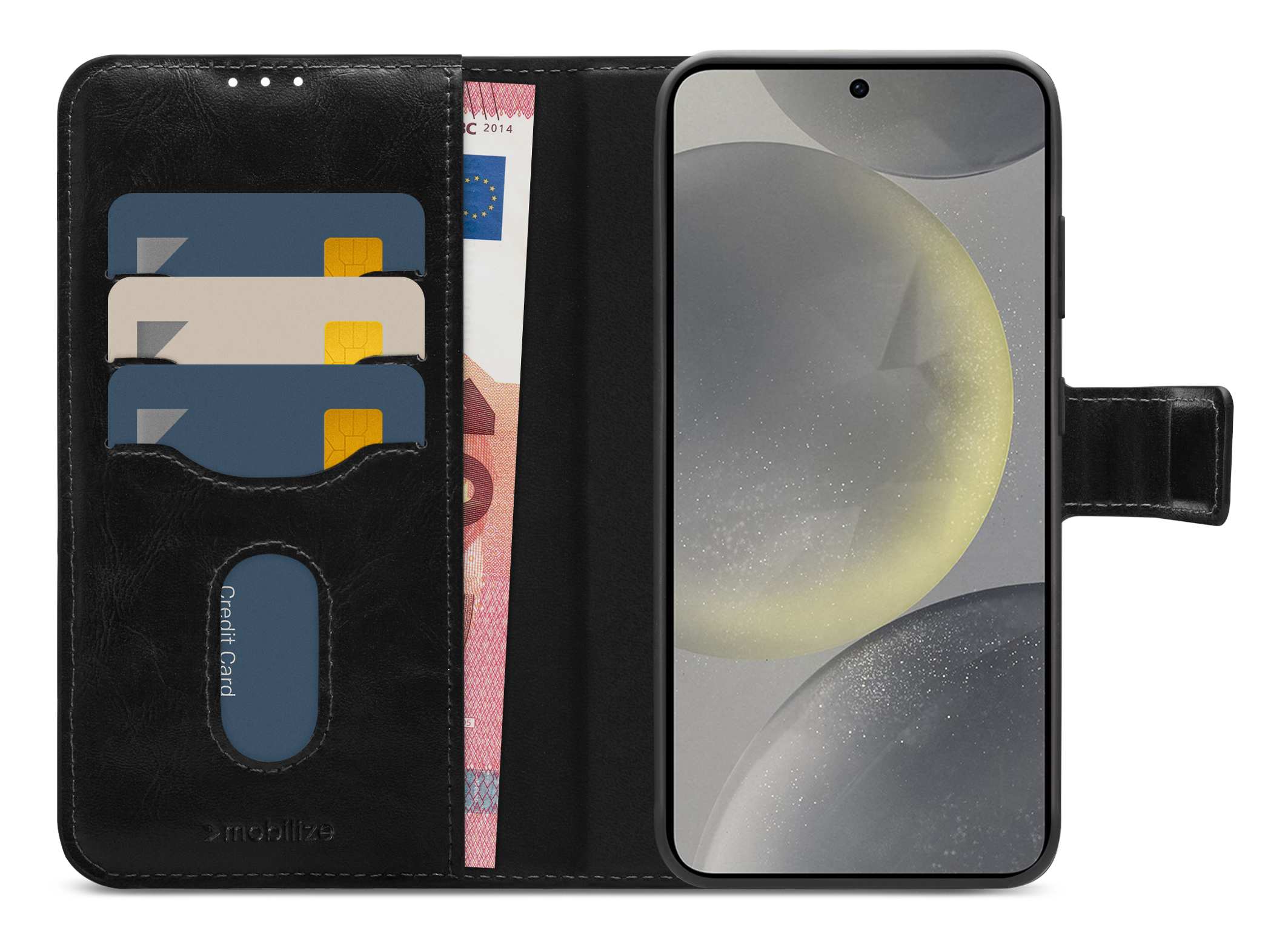 Aan de binnenkant van de book case vind je twee vakjes voor bankpassen of briefgeld, waarvan één met een handige slide-uitsparing. Daarnaast is er een groot vak voor papieren, waardoor je al je essentiële items overzichtelijk en bij de hand hebt. De case en cover zijn zo ontworpen dat alle uitsparingen voor camera, geluid en connectoren perfect toegankelijk blijven. Zo blijft jouw mobiel volledig functioneel, ook in de case.