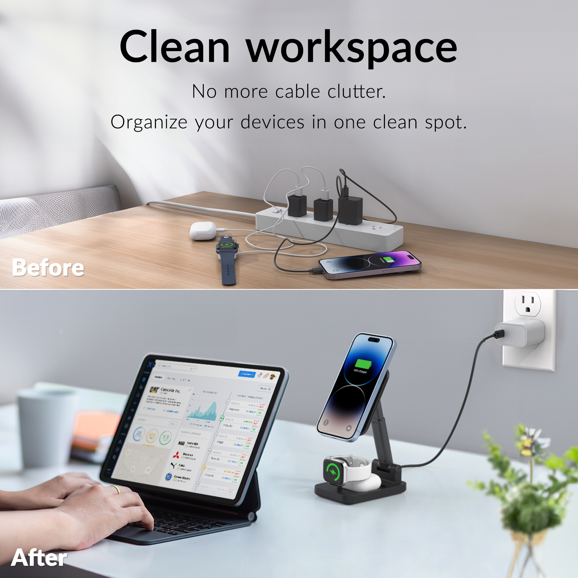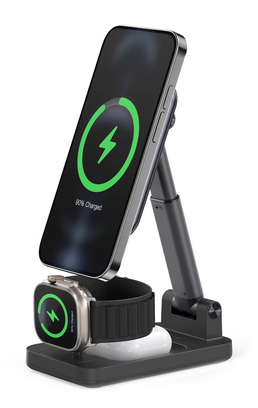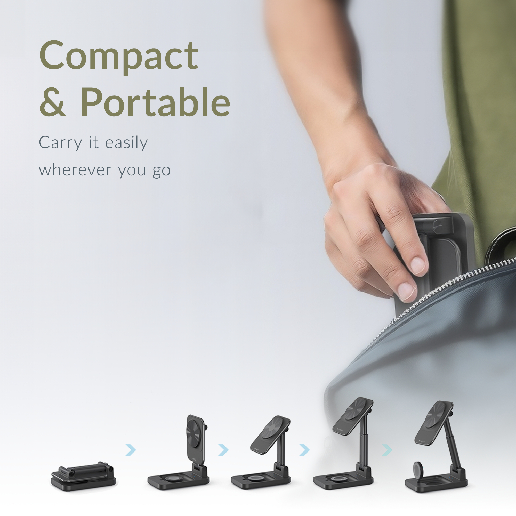 Het compacte, minimalistische en opvouwbaar ontwerp van het Mobilize 3in1 Charger Station neemt weinig ruimte in beslag, terwijl het toch een krachtige laadoplossing biedt voor al je apparaten. Het station is zo ontworpen dat het je apparaten niet alleen oplaadt, maar ook elegant presenteert.