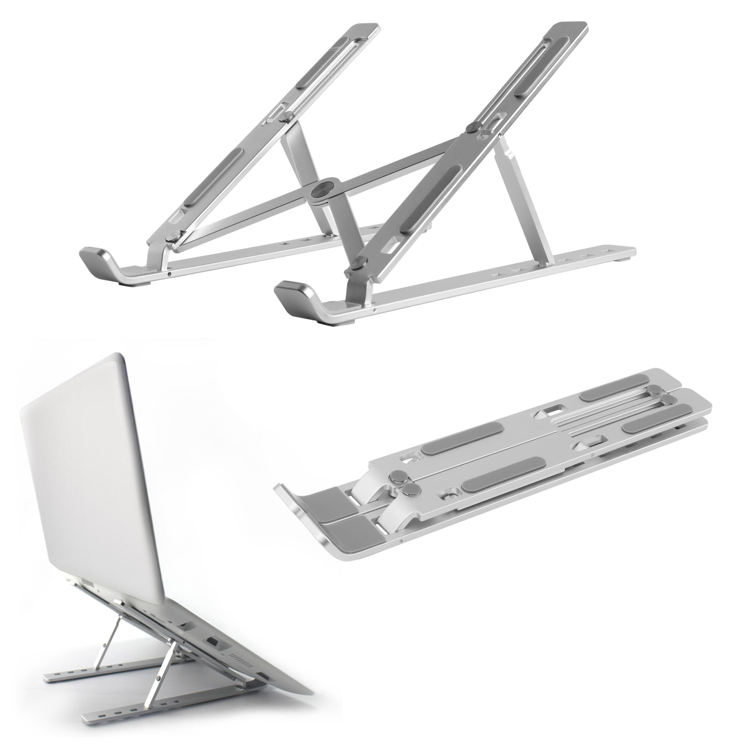 De Mobilize Aluminium Laptop Stand is onmisbaar wanneer je thuis of op kantoor werkt met een laptop. Hiermee kan je jouw laptop op de meest ideale kijkpositie instellen zodat je een goede ergonomische houding aanneemt tijdens het werk. De ideale kijkpositie is natuurlijk erg persoonlijk en daarom heeft de stand 6 verschillende standen.