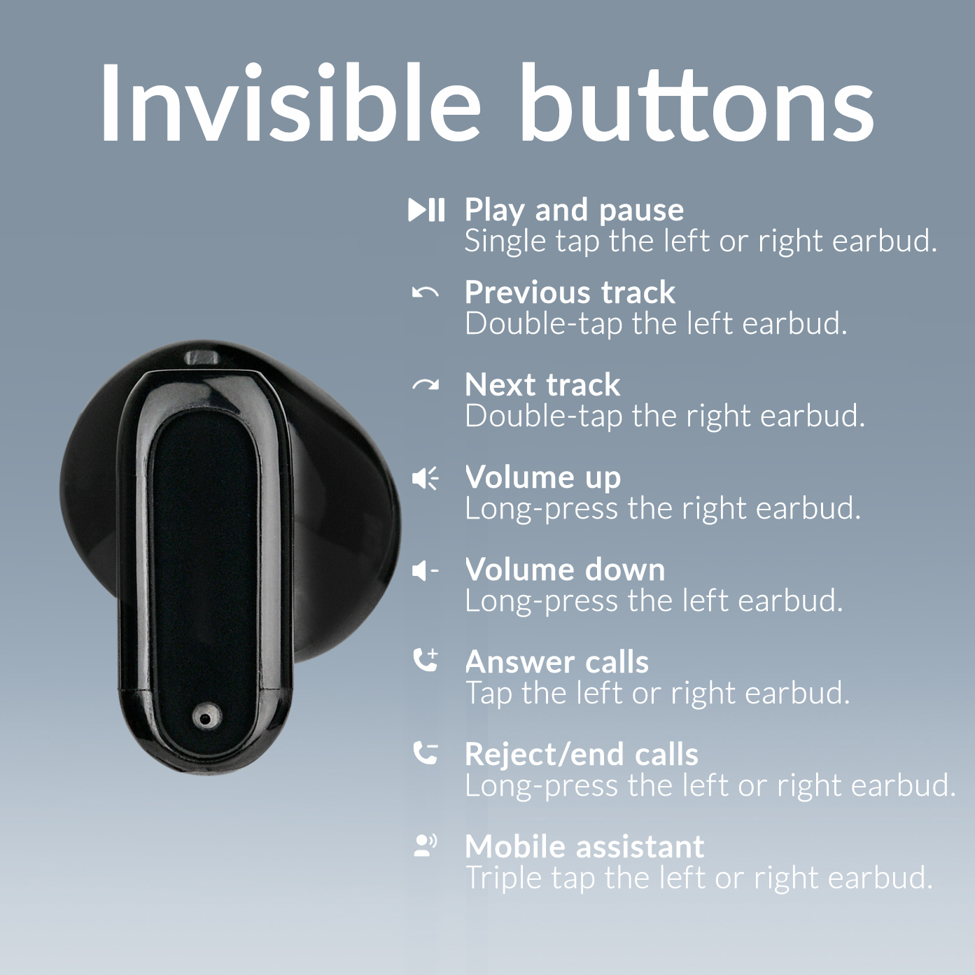 Je bedient de earbuds met intelligente ingebouwde sensoren. Met kleine tikjes op de oortjes kan je een telefoongesprek aannemen/ophangen, muziek vooruit of achteruit skippen, volume aanpassen of zelfs de assistent op je telefoon activeren.