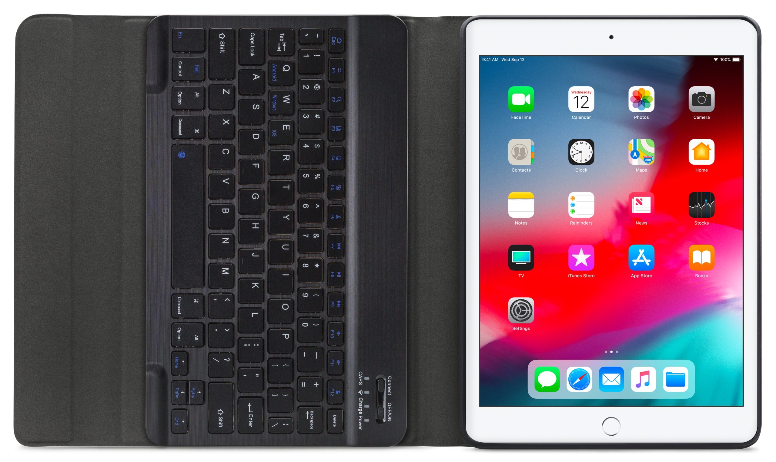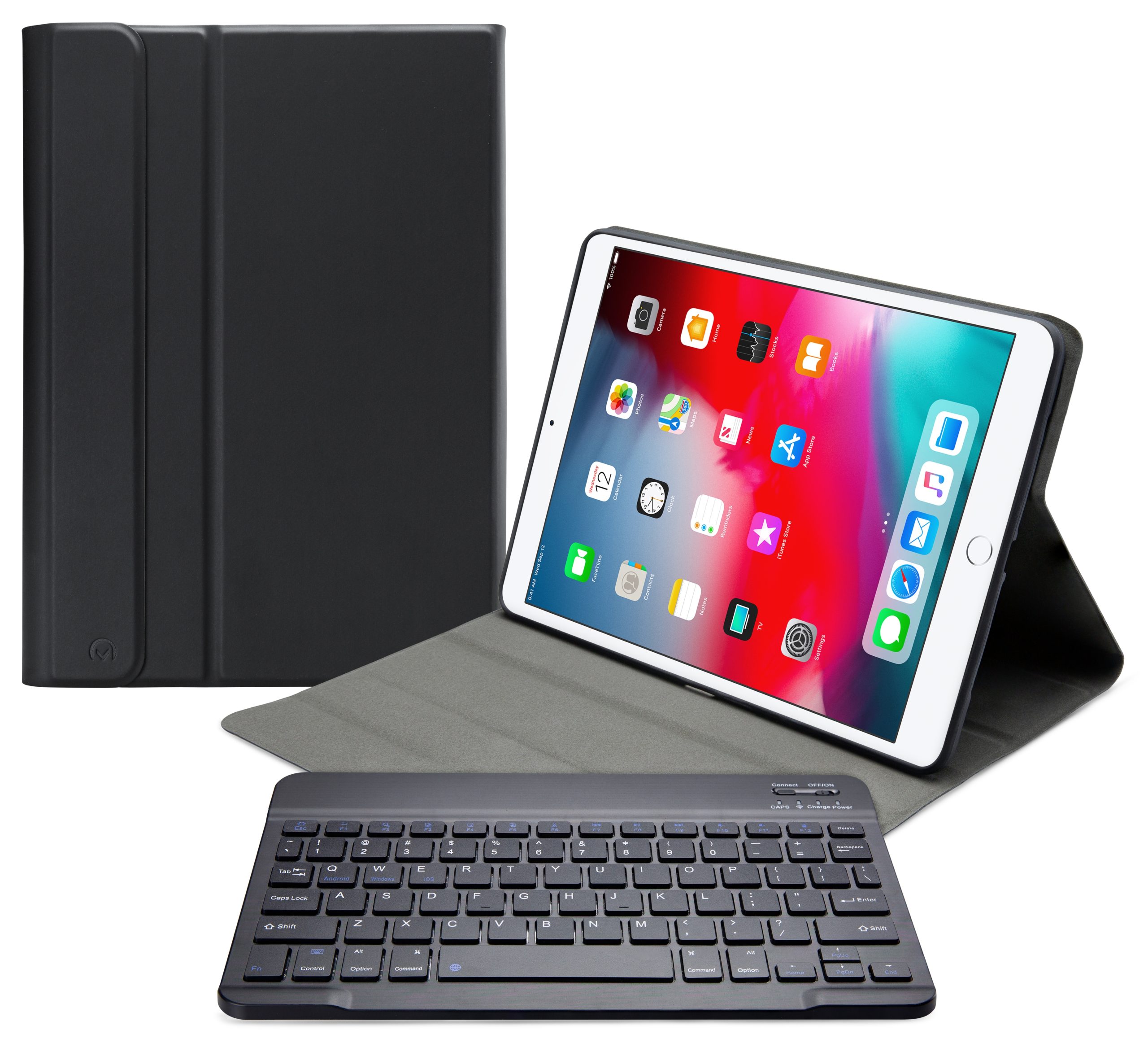 Dankzij gleuven aan de binnenkant van de case is de tablet is in 3 verschillende standen te zetten voor beter zicht op het scherm tijdens het typen van je document of Teams-vergadering. Door middel van Bluetooth maakt u verbinding met het QWERTY-toetsenbord. Het uitneembare toetsenbord is licht van gewicht, heeft een solide bouw zodat het comfortabel typt en zit met sterke magneten stevig vast in de case. Een extra laag microfiber onder het toetsenbord zorgt er ook nog eens voor dat het niet weg zal glijden tijdens gebruik en voor extra stevigheid. In de flap van de case zit ook een sterke magneet die de gehele case netjes afsluit.
