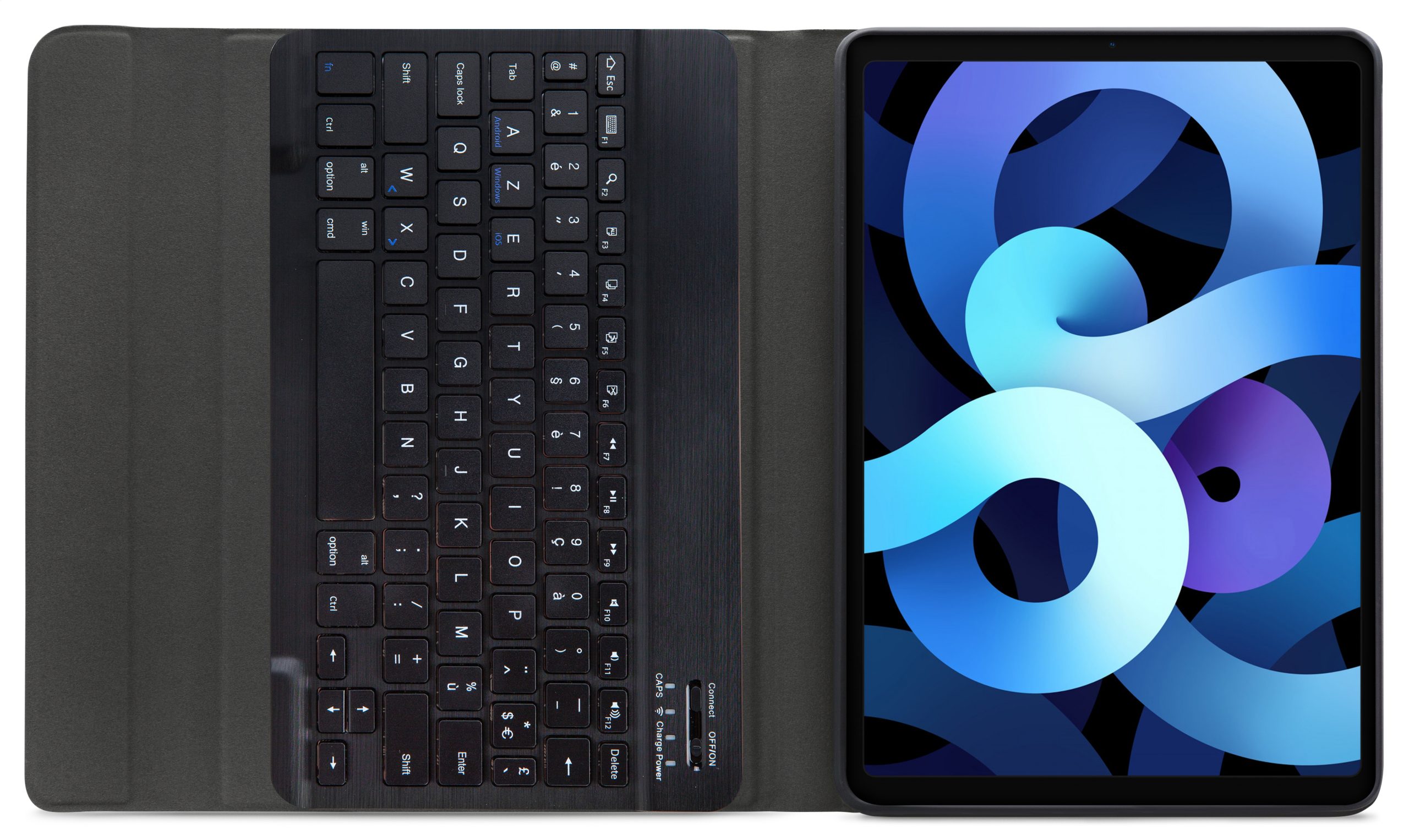 Dankzij gleuven aan de binnenkant van de case is de tablet is in 3 verschillende standen te zetten voor beter zicht op het scherm tijdens het typen van je document of Teams-vergadering. Door middel van Bluetooth maakt u verbinding met het AZERTY-toetsenbord. Het uitneembare toetsenbord is licht van gewicht, heeft een solide bouw zodat het comfortabel typt en zit met sterke magneten stevig vast in de case. Een extra laag microfiber onder het toetsenbord zorgt er ook nog eens voor dat het niet weg zal glijden tijdens gebruik en voor extra stevigheid. In de flap van de case zit ook een sterke magneet die de gehele case netjes afsluit.