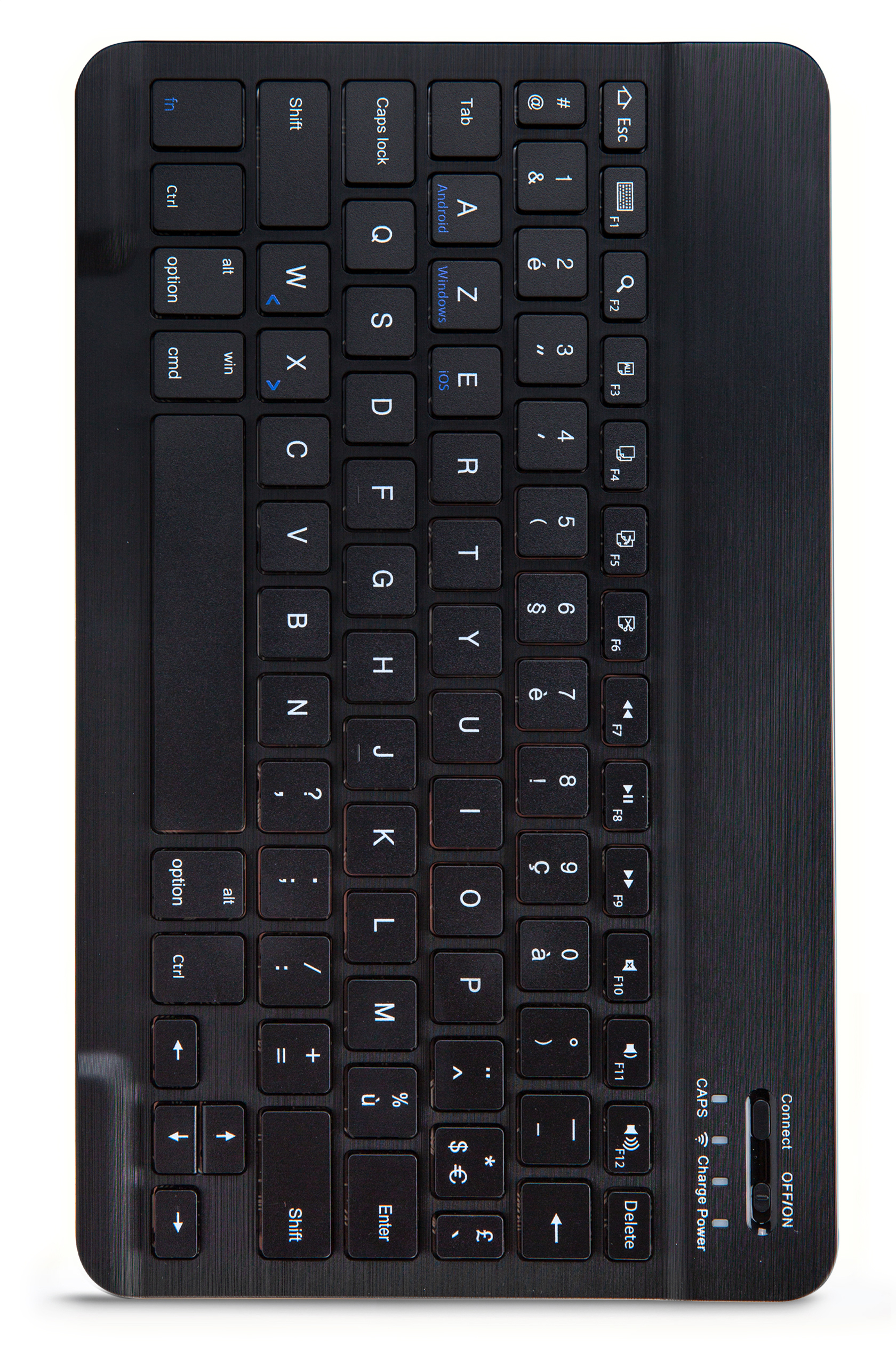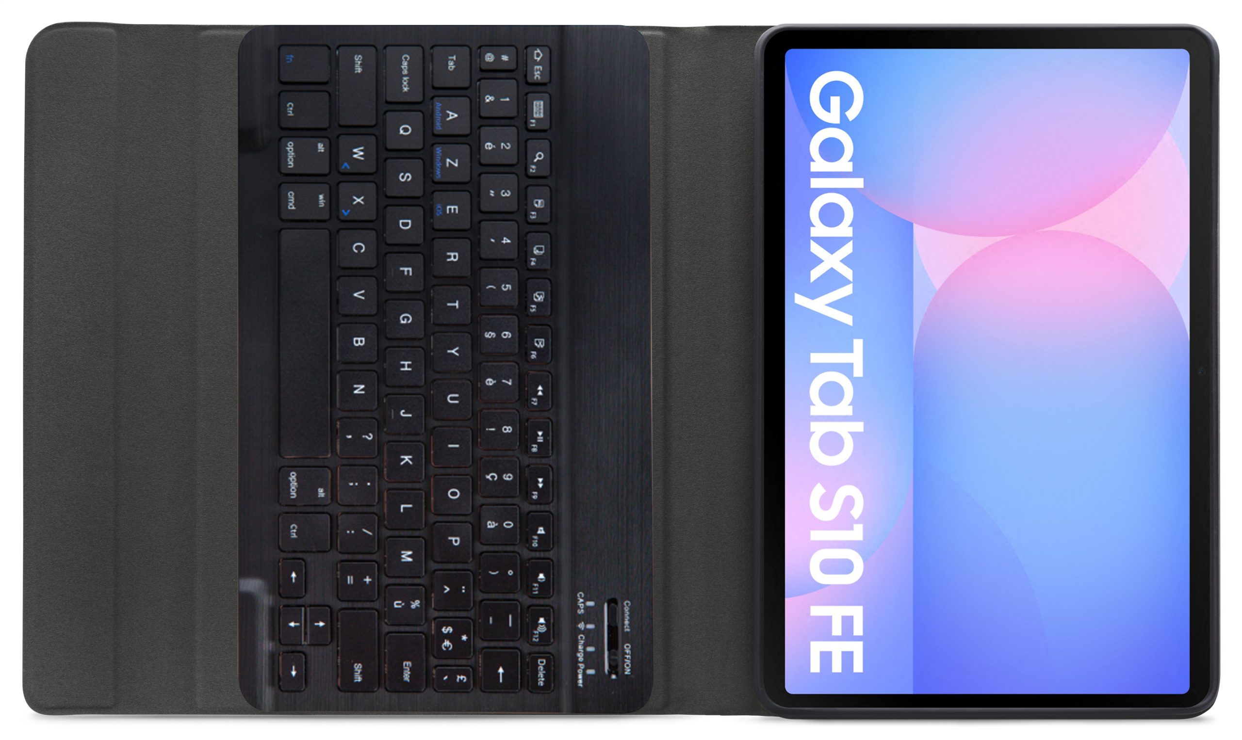 Dankzij gleuven aan de binnenkant van de case is de tablet is in 3 verschillende standen te zetten voor beter zicht op het scherm tijdens het typen van je document of Teams-vergadering. Door middel van Bluetooth maakt u verbinding met het AZERTY-toetsenbord. Het uitneembare toetsenbord is licht van gewicht, heeft een solide bouw zodat het comfortabel typt en zit met sterke magneten stevig vast in de case. Een extra laag microfiber onder het toetsenbord zorgt er ook nog eens voor dat het niet weg zal glijden tijdens gebruik en voor extra stevigheid. In de flap van de case zit ook een sterke magneet die de gehele case netjes afsluit.