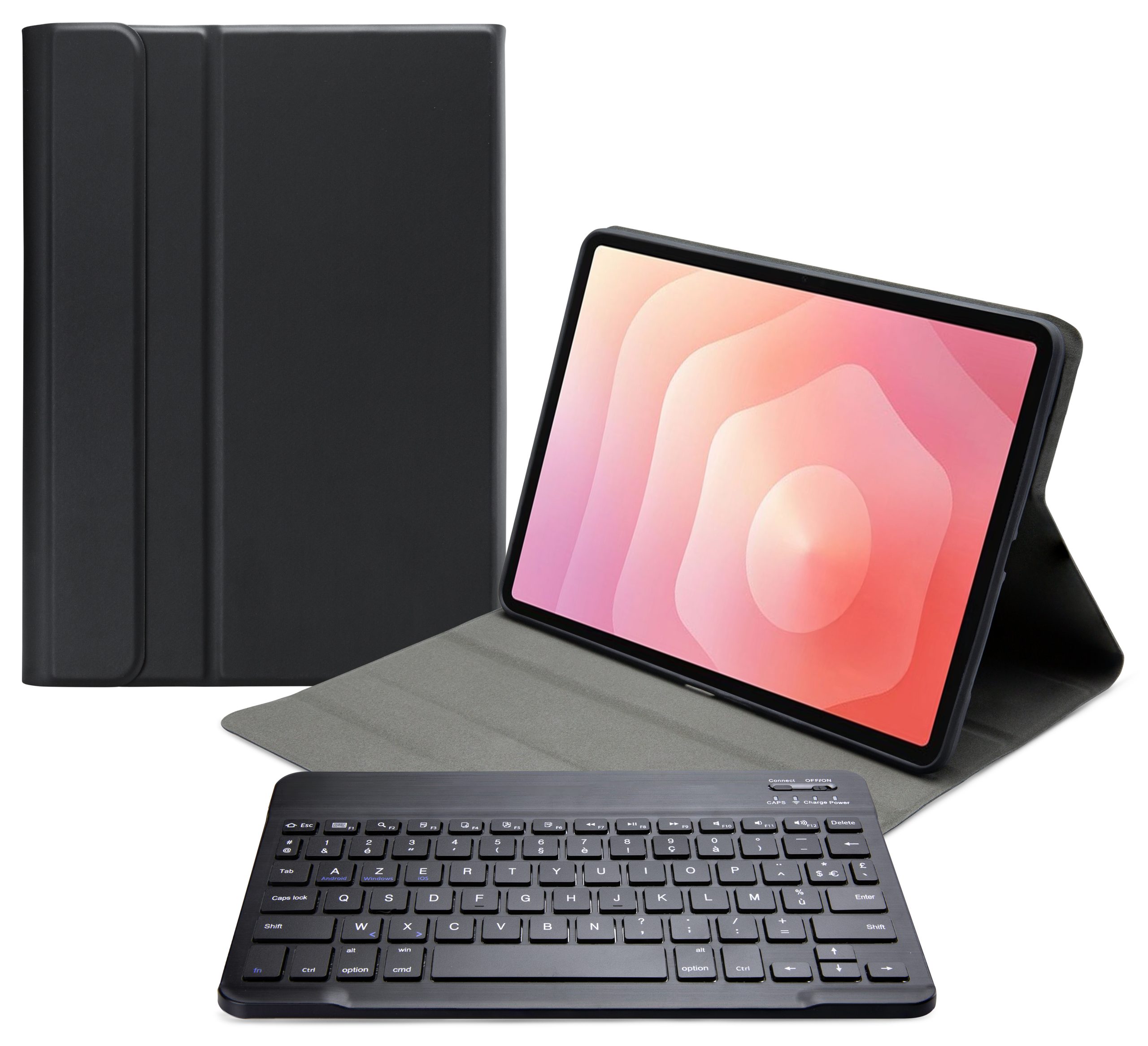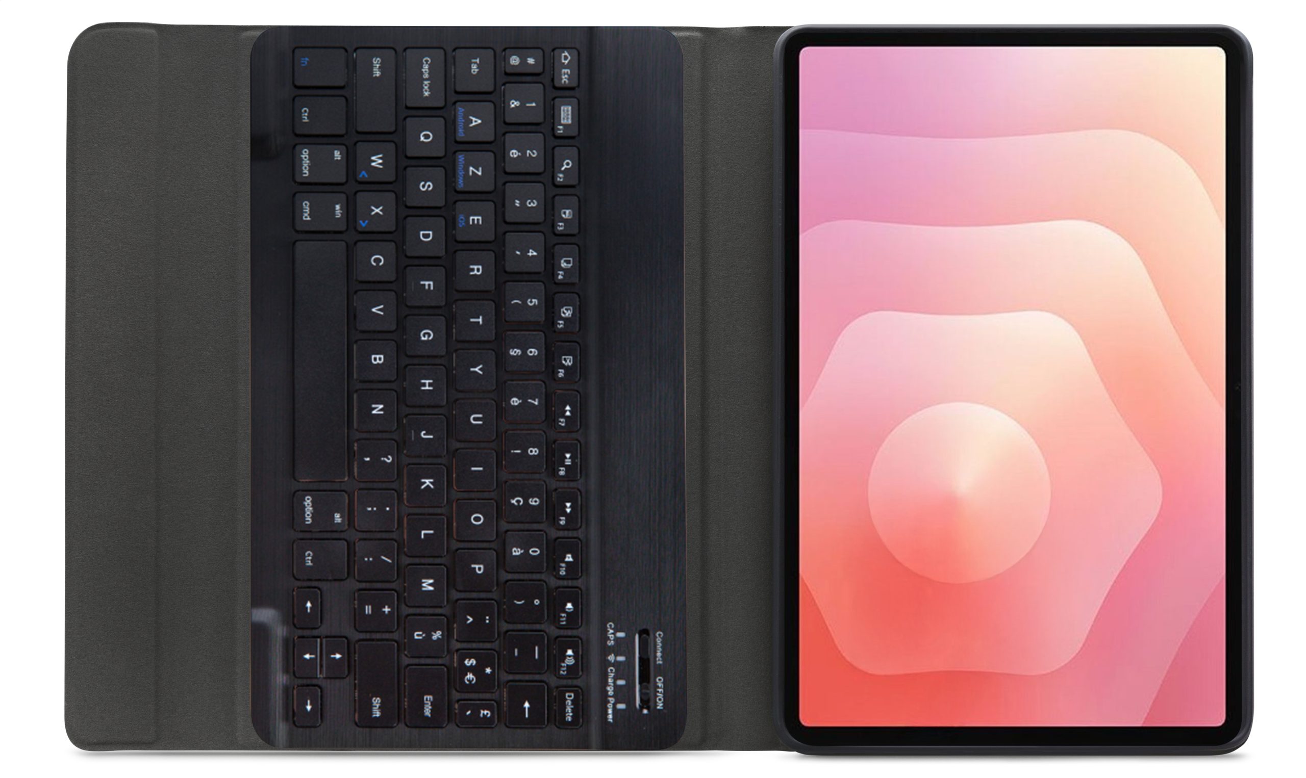 Dankzij gleuven aan de binnenkant van de case is de tablet is in 3 verschillende standen te zetten voor beter zicht op het scherm tijdens het typen van je document of Teams-vergadering. Door middel van Bluetooth maakt u verbinding met het AZERTY-toetsenbord. Het uitneembare toetsenbord is licht van gewicht, heeft een solide bouw zodat het comfortabel typt en zit met sterke magneten stevig vast in de case. Een extra laag microfiber onder het toetsenbord zorgt er ook nog eens voor dat het niet weg zal glijden tijdens gebruik en voor extra stevigheid. In de flap van de case zit ook een sterke magneet die de gehele case netjes afsluit.