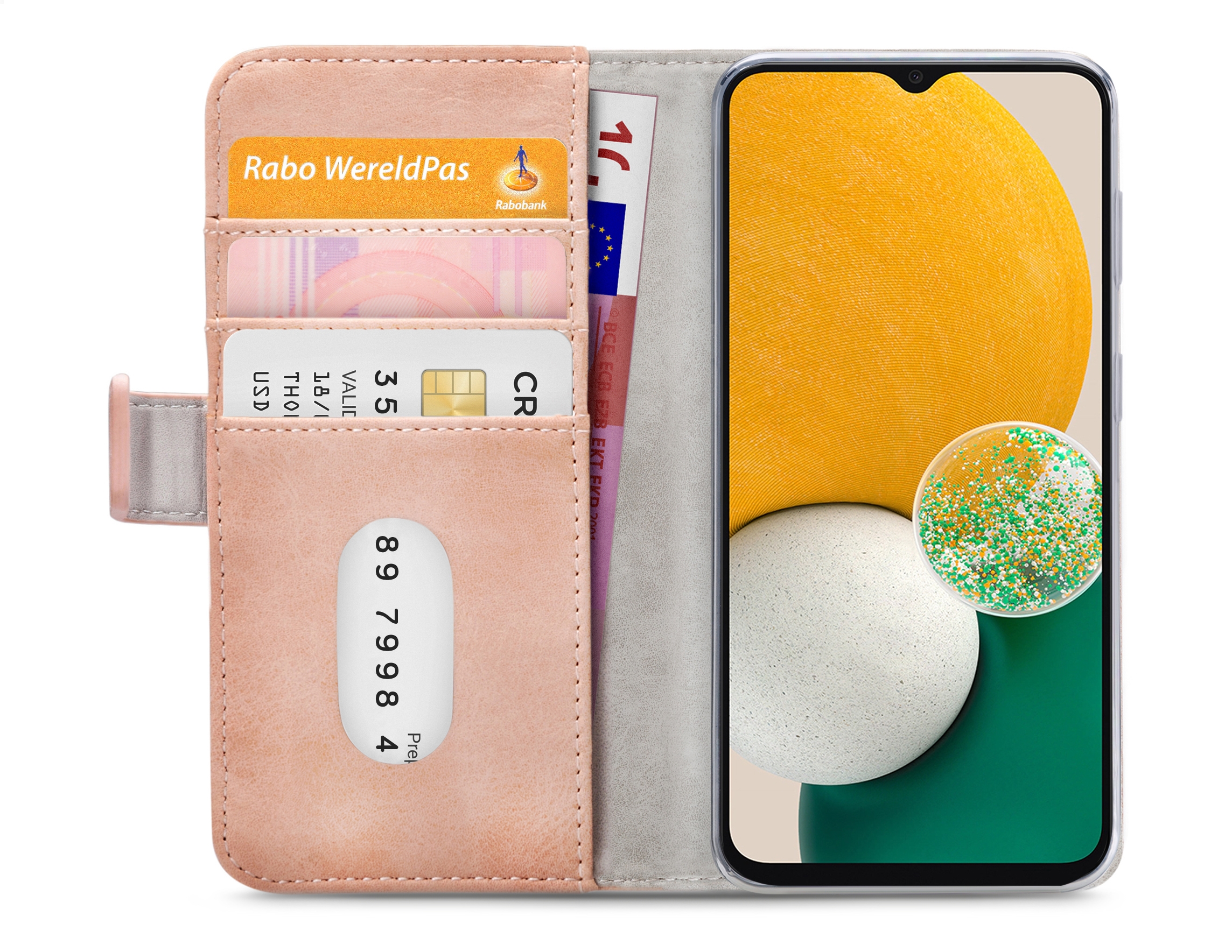 De vele uitsparingen in de Gelly cover zorgen er voor dat u alle knoppen en aansluitingen goed kunt blijven gebruiken. Het voordeel van een Gelly cover is dat deze door zijn flexibiliteit langer meegaat en niet breekt. De case in zijn geheel is mooi compact en u hem daarom gemakkelijk overal mee naar toe nemen. Aan de linker binnenkant van de case zitten drie horizontale vakken voor pasjes, visitekaartjes of briefgeld. De kleur evenals het materiaal voor de horizontale vakken zijn gelijk aan de kleur en het materiaal aan de buitenkant.