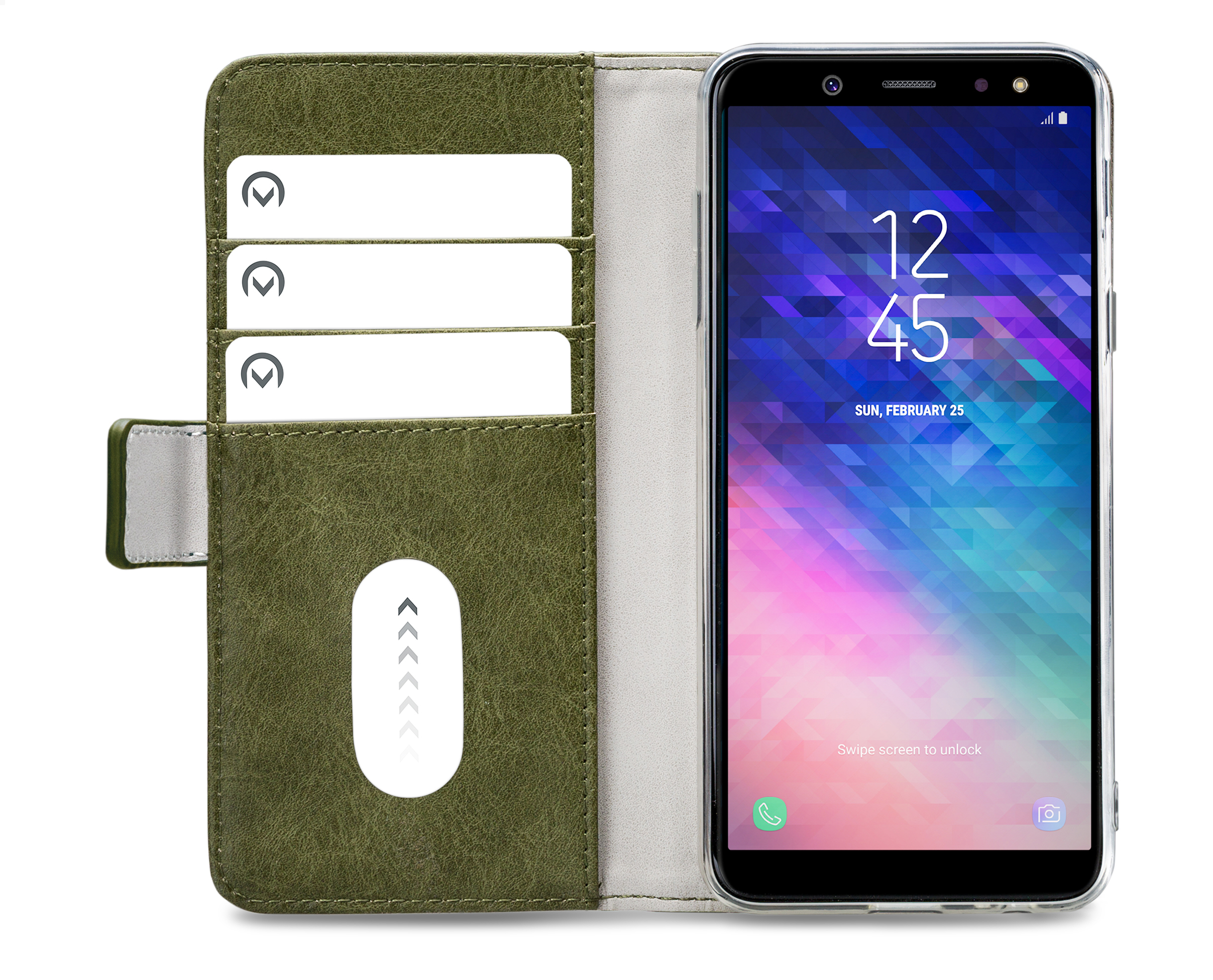 De vele uitsparingen in de Gelly cover zorgen er voor dat u alle knoppen en aansluitingen goed kunt blijven gebruiken. Het voordeel van een Gelly cover is dat deze door zijn flexibiliteit langer meegaat en niet breekt. De case in zijn geheel is mooi compact en u hem daarom gemakkelijk overal mee naar toe nemen. Aan de linker binnenkant van de case zitten drie horizontale vakken voor pasjes, visitekaartjes of briefgeld. De kleur evenals het materiaal voor de horizontale vakken zijn gelijk aan de kleur en het materiaal aan de buitenkant.