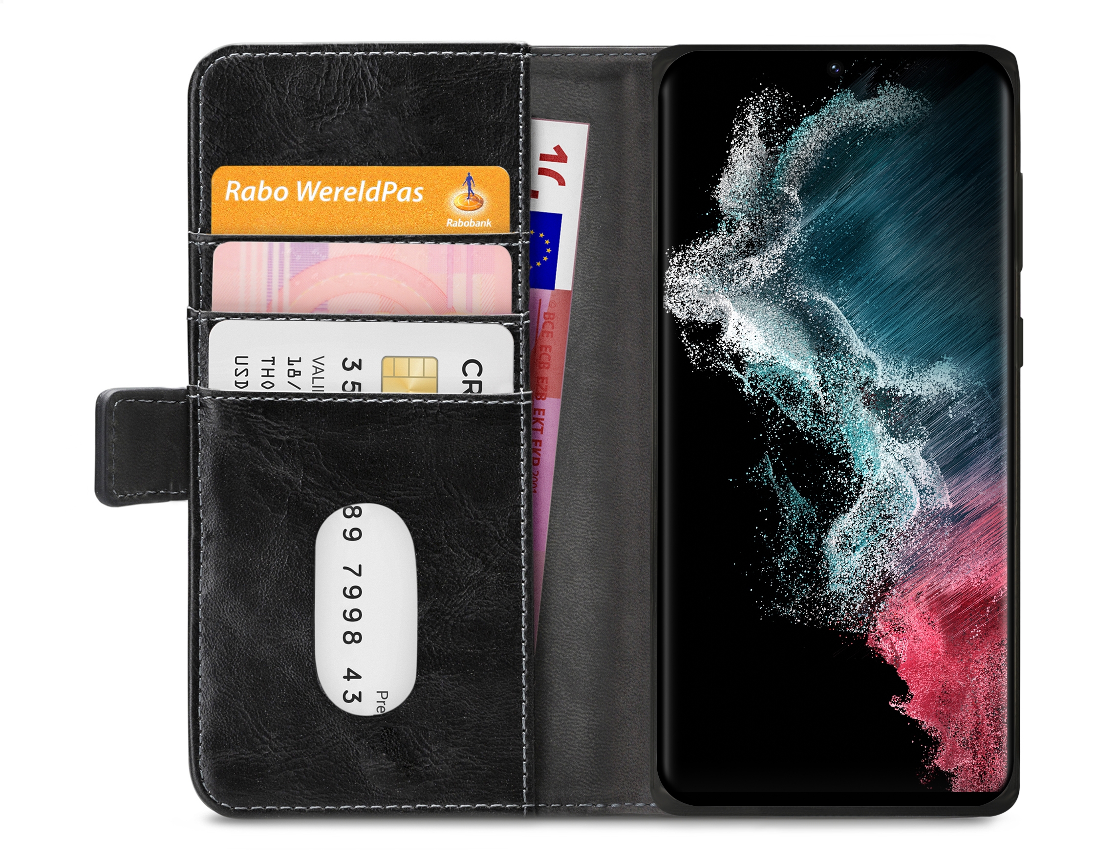 De vele uitsparingen in de Gelly cover zorgen er voor dat u alle knoppen en aansluitingen goed kunt blijven gebruiken. Het voordeel van een Gelly cover is dat deze door zijn flexibiliteit langer meegaat en niet breekt. De case in zijn geheel is mooi compact en u hem daarom gemakkelijk overal mee naar toe nemen. Aan de linker binnenkant van de case zitten drie horizontale vakken voor pasjes, visitekaartjes of briefgeld. De kleur evenals het materiaal voor de horizontale vakken zijn gelijk aan de kleur en het materiaal aan de buitenkant.