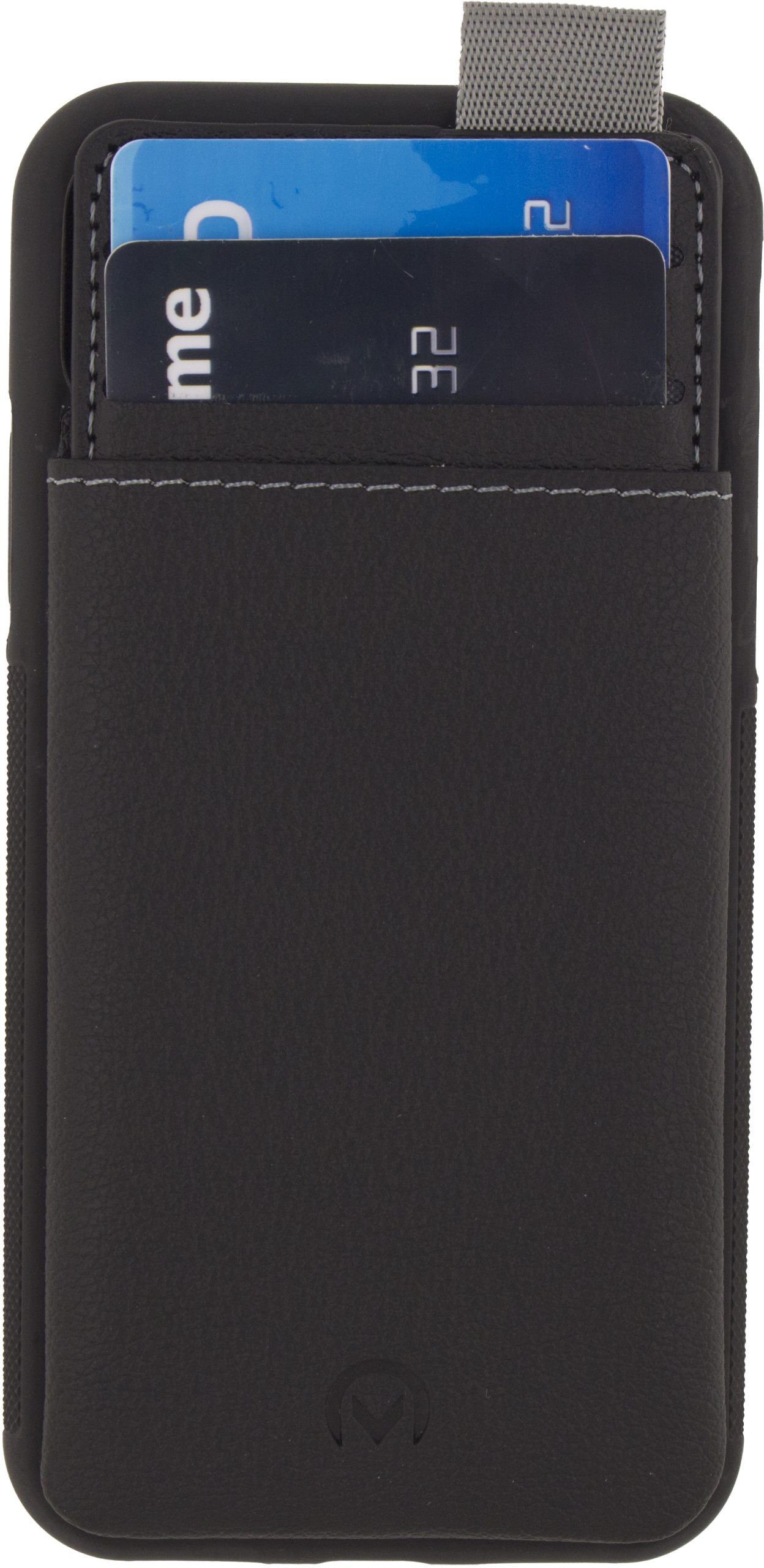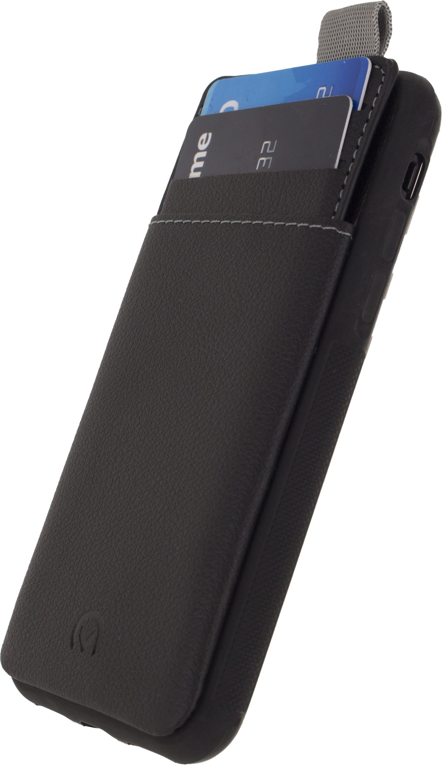 De Mobilize Gelly Card case is een sterke en flexibele bescherming van uw mobiel. Op de case zit een mooi afgewerkt vak waaruit een slede met ruimte voor twee pasjes getrokken kan worden. Doormiddel van een stevige lus haalt u de slede soepel omhoog en duwt het makkelijk weer terug. De slede kan, om verlies te voorkomen, niet uit het vak getrokken worden. Met deze case zijn ook de knoppen van uw mobiel beschermd tegen stof en vuil, terwijl u ze gewoon kan gebruiken zoals u gewend bent en hij is voorzien van de juiste uitsparingen. De case is gemaakt van zwart TPU en hoogwaardig kunstleer waarmee u een goede grip heeft op uw mobiel.