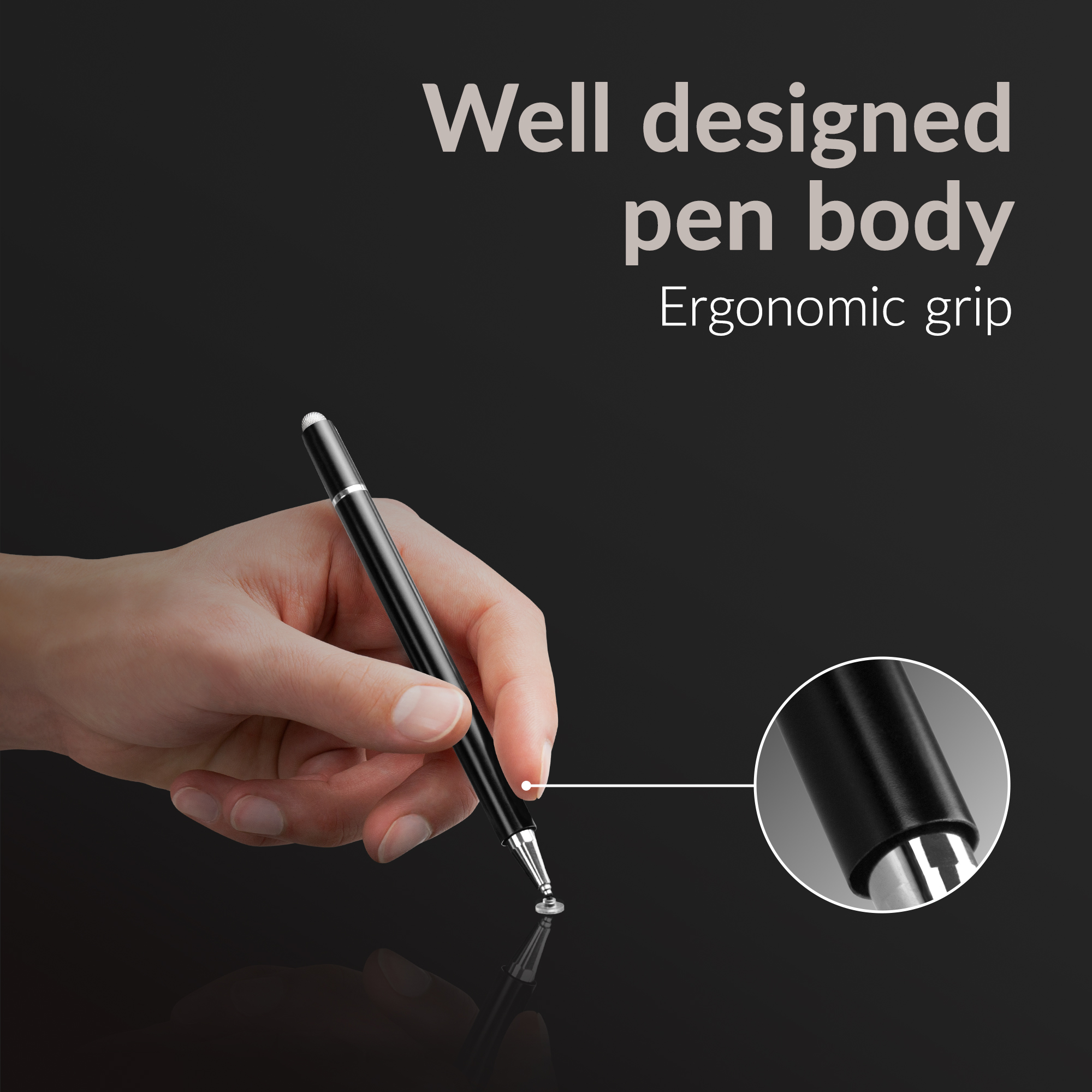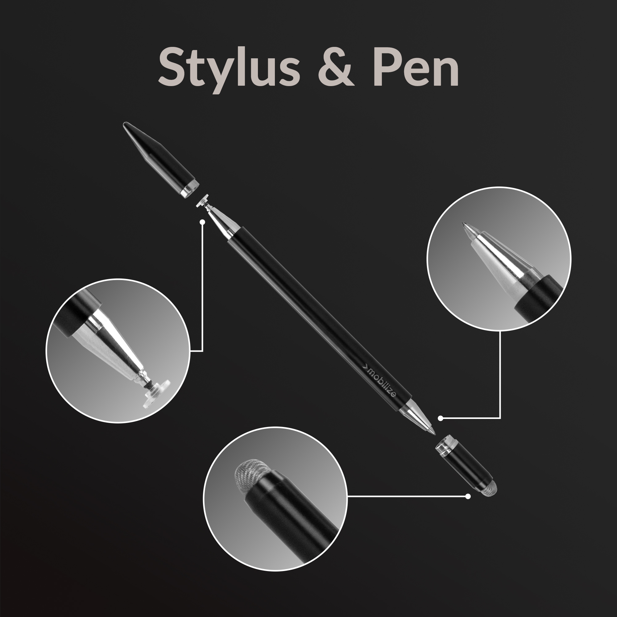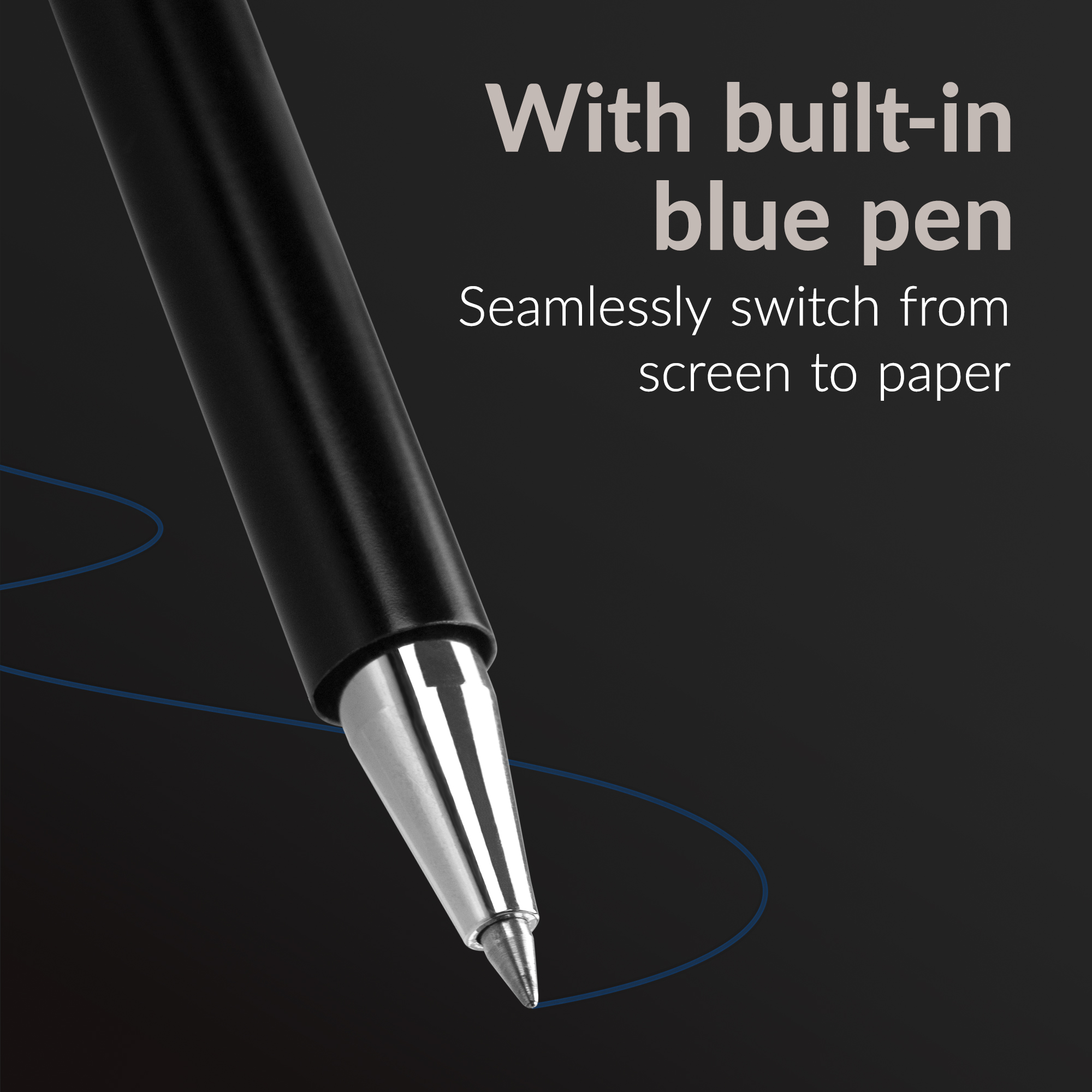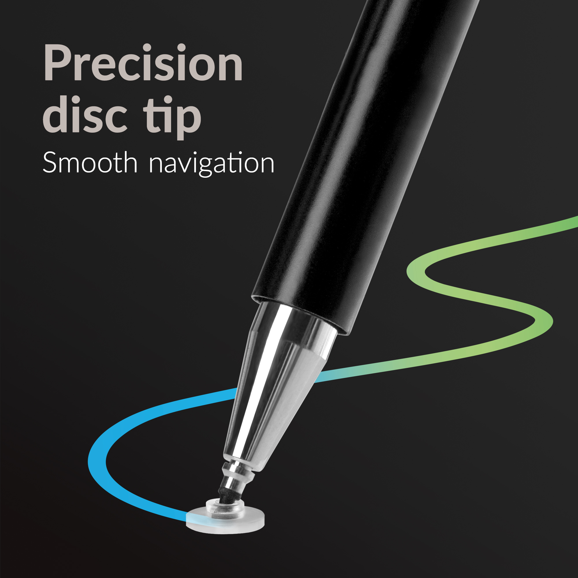 Aan het ene uiteinde van de pen bevindt zich een Precision Disc Tip-stylus die je met uiterste precisie laat werken op touchscreens van smartphones, tablets en andere capacitieve apparaten. Deze tip zorgt voor vloeiende en accurate bewegingen, ideaal voor notities of schetsen. Aan de andere kant vind je een hoogwaardige balpen met blauwe inkt, perfect voor traditionele schrijftaken. In de dop van de balpen is een zachte capacitieve stylus verwerkt waarmee je snel jouw apparaten mee kunt bedienen.