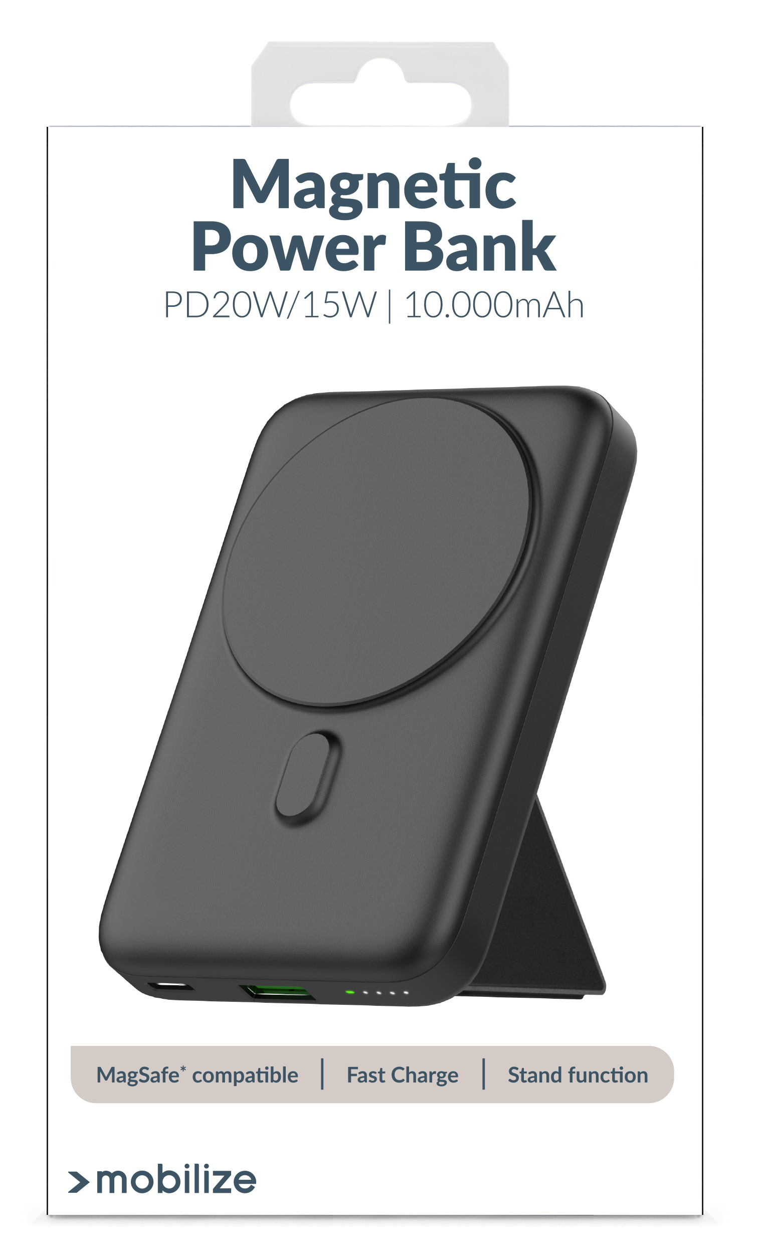 Ontmoet de Mobilize Magnetic Wireless Magsafe Compatible PD Power Bank met een indrukwekkende capaciteit van 10000mAh en max output van 15W draadloos en 20W bedraad. Deze geavanceerde powerbank, in een slank ontwerp, bied je een betrouwbare en draadloze lading voor al je Magsafe-compatibele apparaten en andere smartphones die draadloos laden ondersteunen.