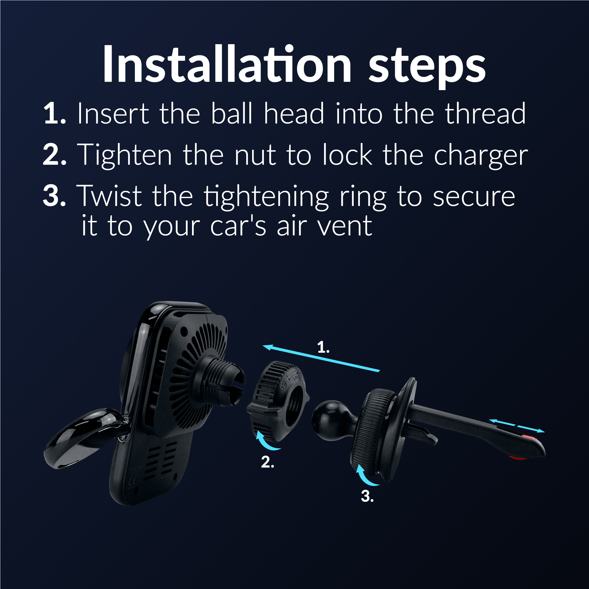 De geïntegreerde houder is volledig MagSafe-compatibel, zodat je telefoon stevig op z’n plek blijft – zelfs op hobbelige wegen. De lader klik je eenvoudig en stabiel vast aan het ventilatierooster van je auto. De Apple Watch-oplader is magnetisch bevestigd en kan moeiteloos worden losgekoppeld. Zo gebruik je hem ook los van de autolader – bijvoorbeeld via een gewone USB-C oplader of direct in de USB-C poort van je laptop. Superhandig tijdens reizen, op kantoor of thuis.