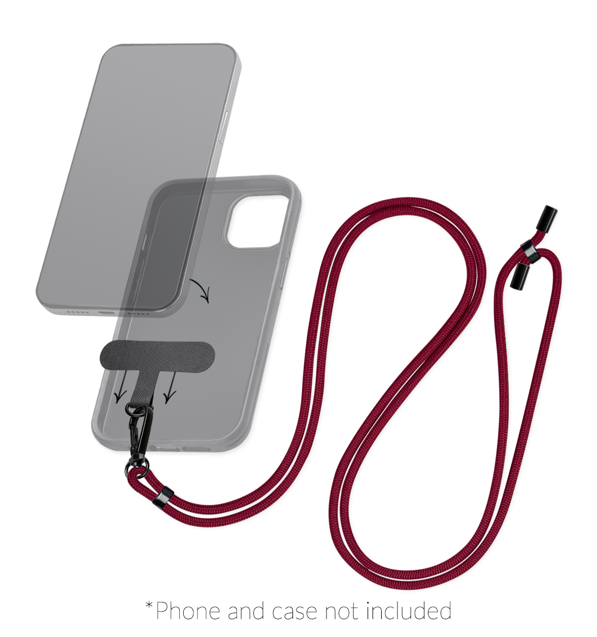 De pad, gemaakt van nylon, plaats je eenvoudig in je favoriete case. Het oog aan de onderzijde van de pad haal je door de uitsparing van de laadconnector om vervolgens daarna jouw toestel in de case te plaatsen. De lanyard, die in diverse kleuren verkrijgbaar is, heeft een stevige metalen karabijn die je door het oog van de pad kan halen. Zo heb jij jouw toestel altijd bij je, heb je het ook snel bij de hand en wanneer jij je toestel niet nodig hebt heb je beide handen helemaal vrij.