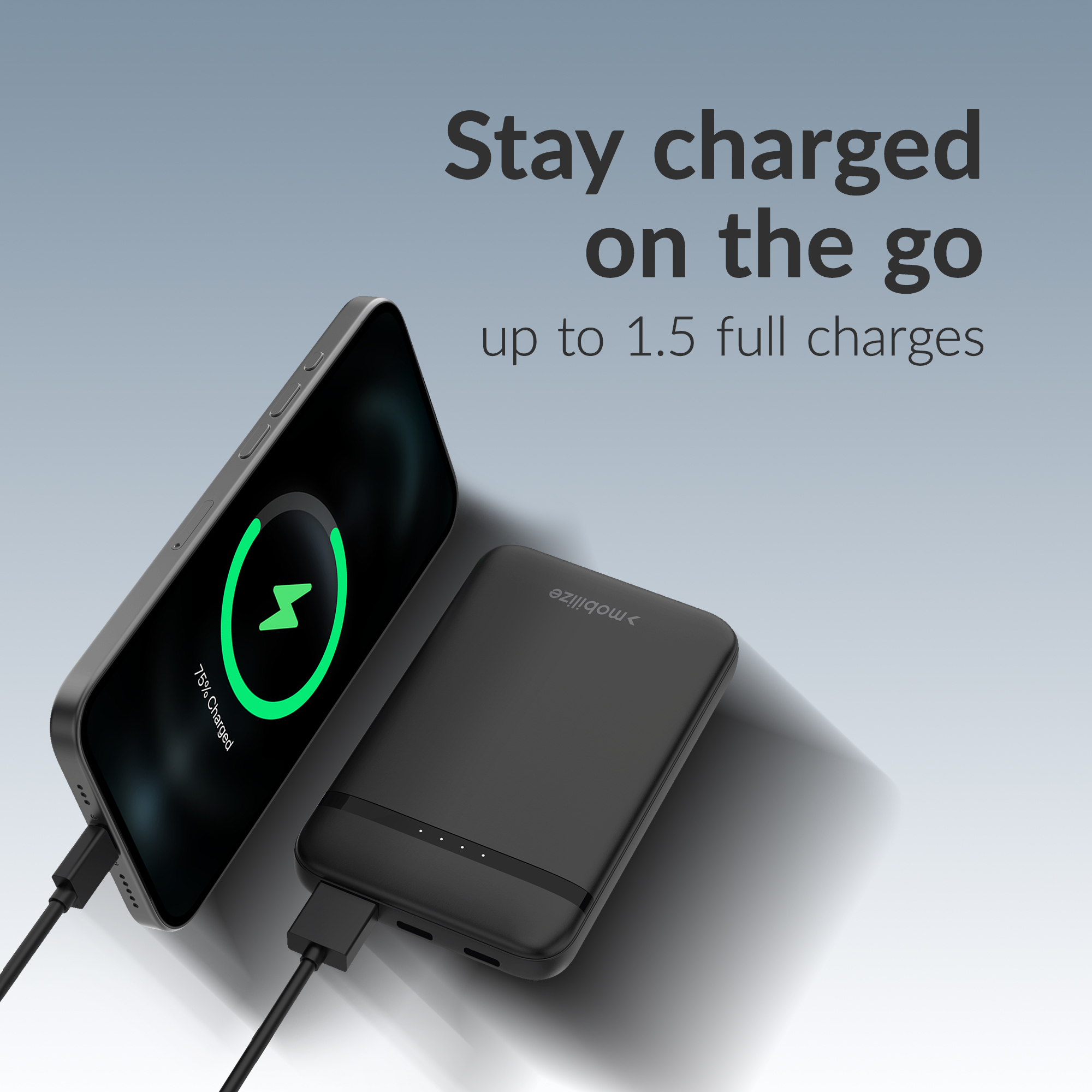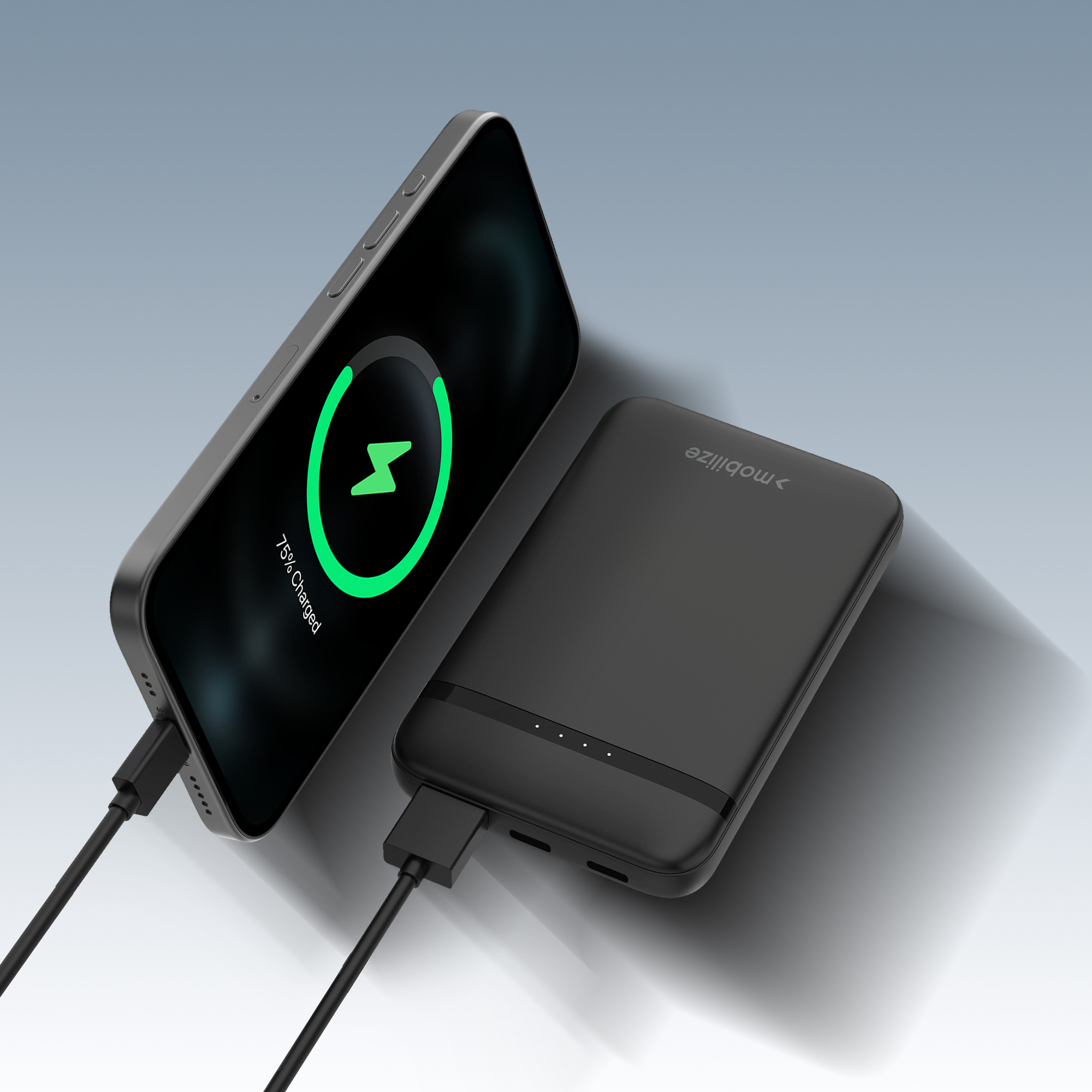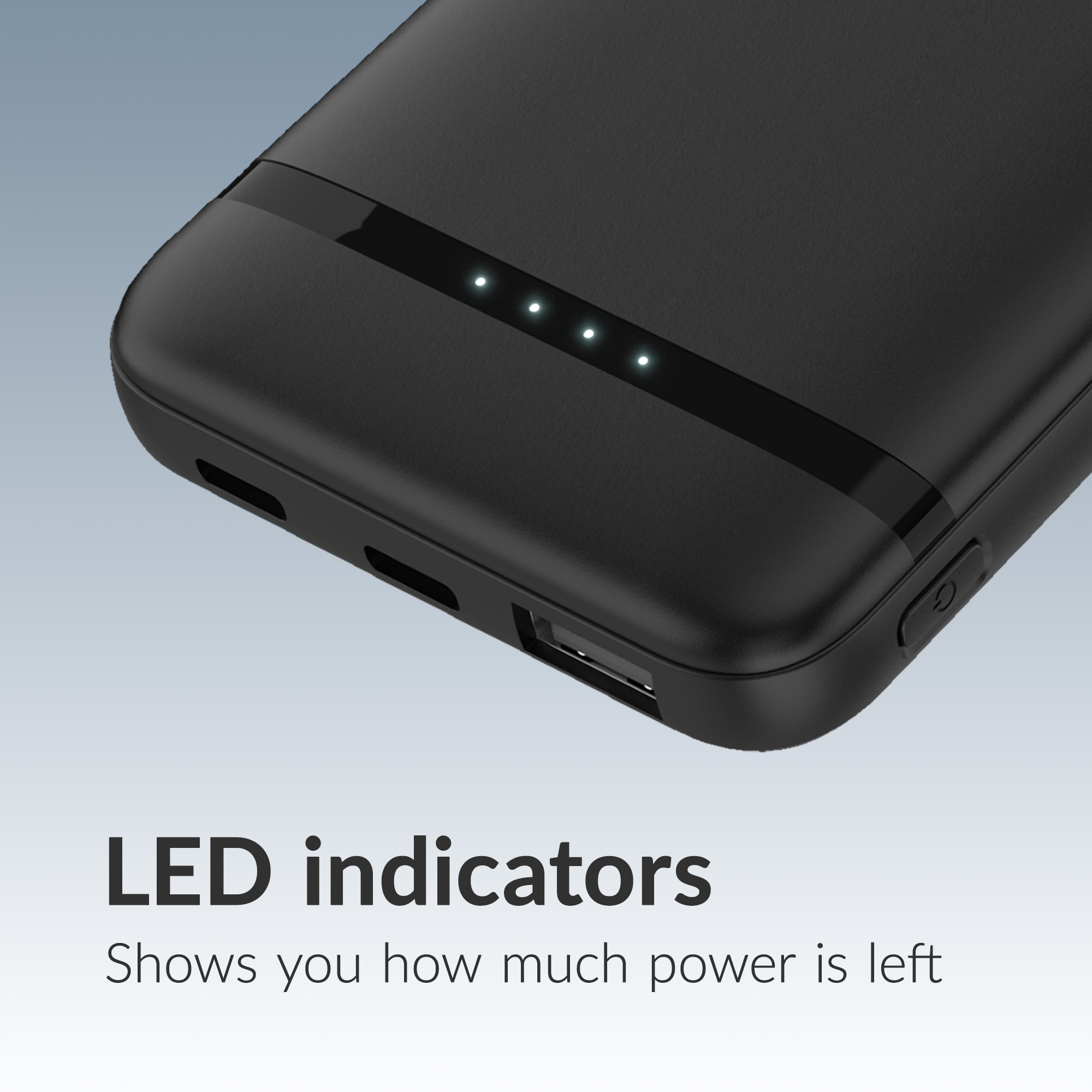 Deze powerbank laadt de meeste smartphones ongeveer 1 keer volledig op – ideaal als noodbatterij of tussentijdse boost. Dankzij de 4 LED-indicatoren zie je in één oogopslag hoeveel power je nog hebt. Het slanke design past makkelijk in je jaszak of tas.