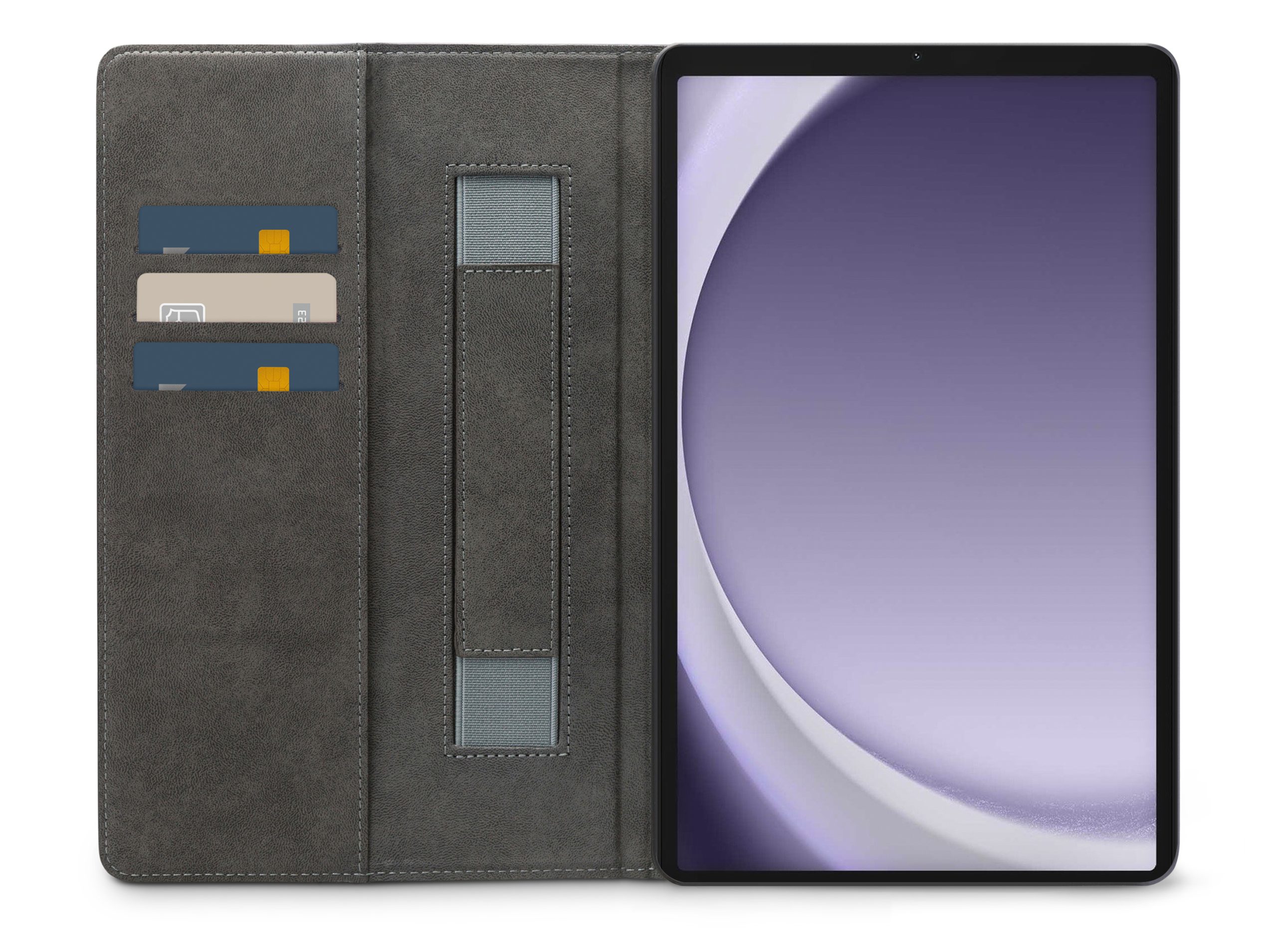 Aan de linker binnenkant van de case zitten drie vakjes voor pasjes, briefgeld en/of visitekaartjes. De case beschikt over een stand functie, zodat je hem makkelijk neer kunt zetten om bijvoorbeeld Netflix of foto’s te kijken. Ook heeft hij aan de linker binnenkant een band waar je hand doorheen kan steken zodat je jouw tablet goed vast kan houden.