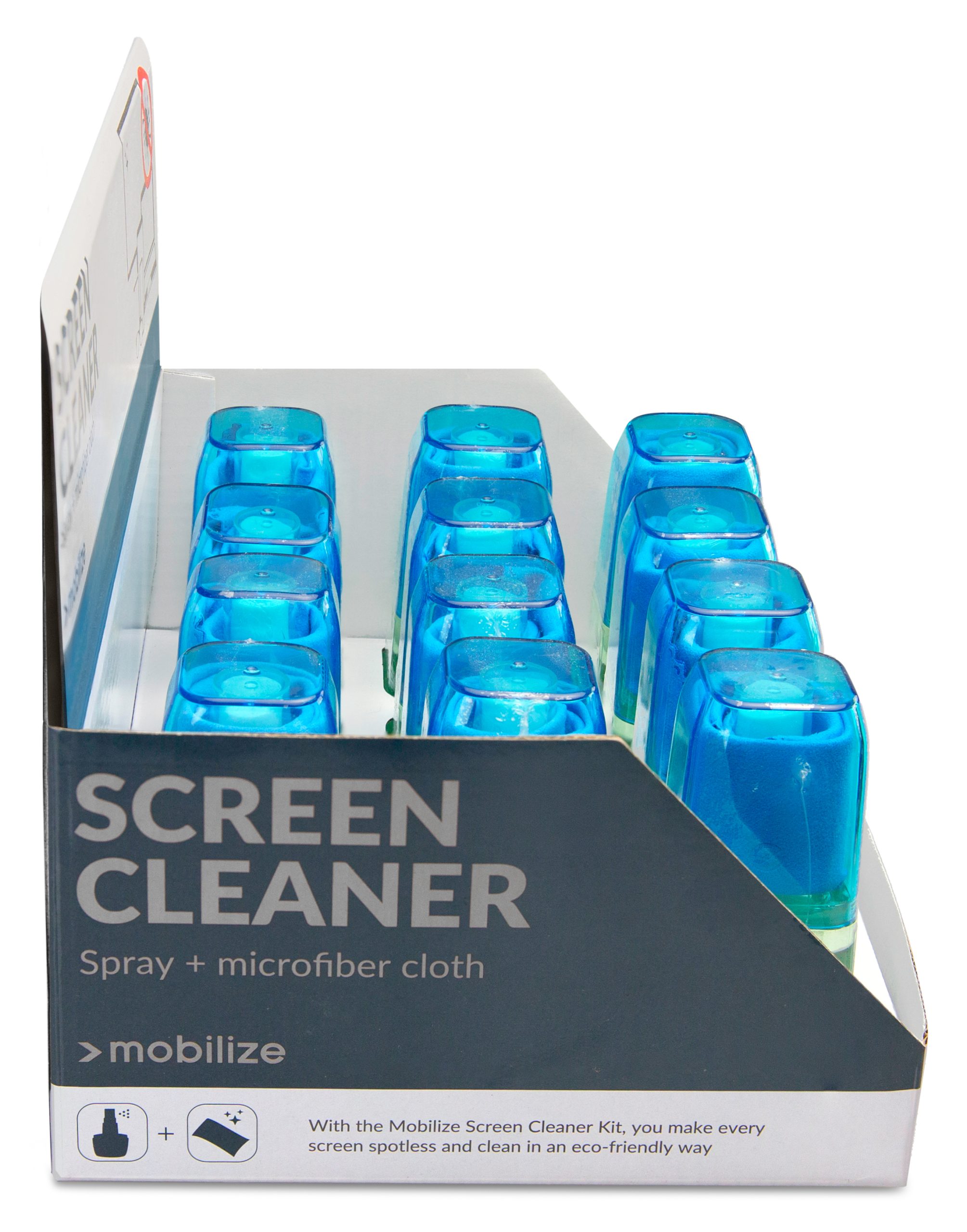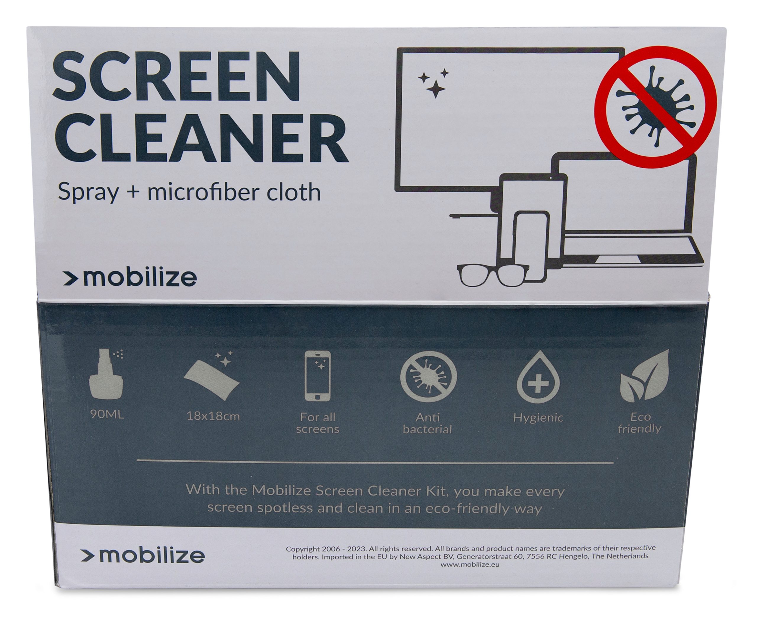 Met de Mobilize Screen Cleaner Kit heeft u een alles-in-één oplossing om elk scherm of glas optimaal schoon te maken. De cleaner kit bestaat uit een mooi, stijlvol en handig mee te nemen flesje spray met in de dop een microvezel doekje. De cleaner maakt hygiënisch schoon en werkt antibacterieel zodat u zowel het zichtbare als het onzichtbare vuil van uw schermen of uw bril kunt verwijderen. De spray is volledig veilig voor u, voor al uw schermen en glas, maar ook voor het milieu.
