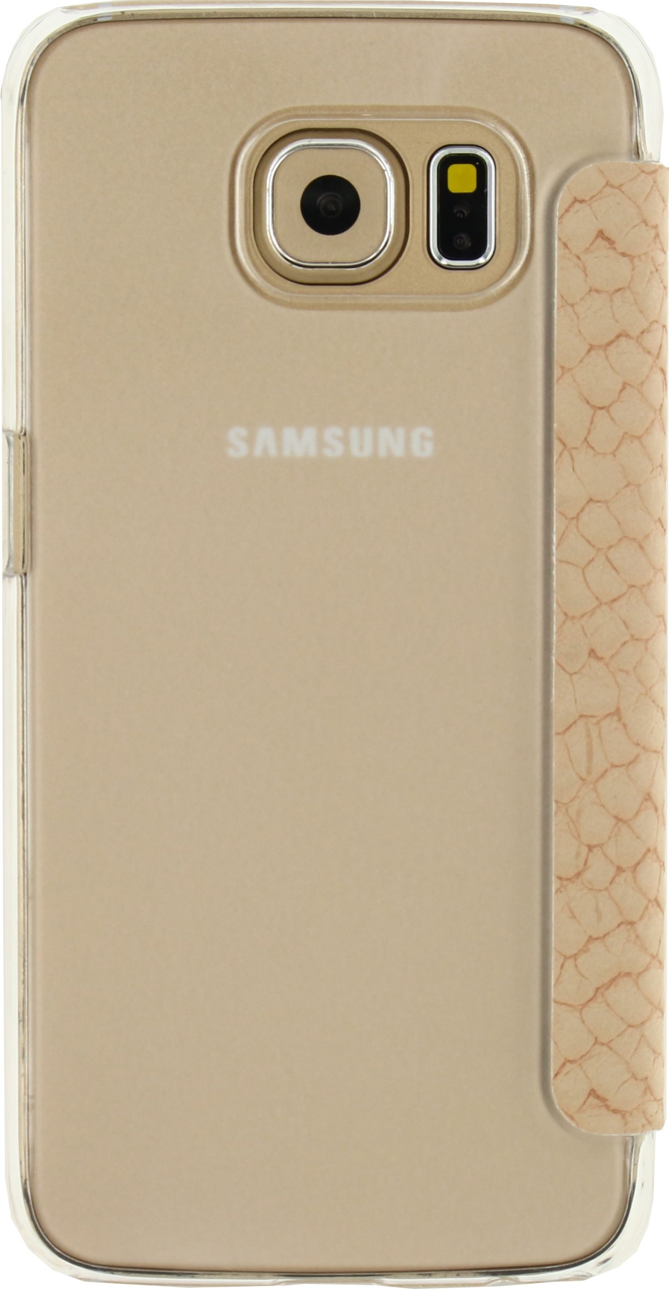 Met de Slim Booklet serie heeft u wel een heel bijzondere case in handen. Dit product is namelijk een combinatie van een hardcover en een book case. De flap aan de voorkant is gemaakt van kunstleer en voorzien van een slangenleerprint. Het materiaal voelt prettig aan en is zacht als suède. Er is een uitsparing gemaakt voor de speaker. Aan de binnenkant zit microvezel, wat bijdraagt om uw beeldscherm vlek- en krasvrij te houden. Er is hier ruimte voor een pasje, visitekaartje of briefgeld. De flap is vastgemaakt aan een semi-transparante hardcover. Zo zijn ook de achterkant en hoeken van uw telefoon beschermd tegen schade, maar dan op een minimalistische manier. Het originele design van telefoon blijft nog goed zichtbaar. Hierdoor is de case veel subtieler dan een gewone book case, maar biedt het wel dezelfde voordelen.