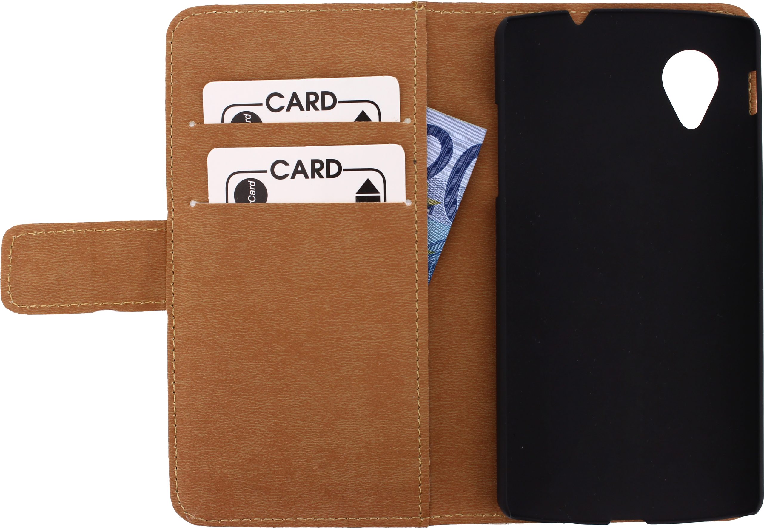 De Mobilize Slim Wallet Book Case is gemaakt van hoogwaardig PU leder en heeft binnenin een mooie, mat zwarte hardcover. De hardcover en het PU leder zijn ultra dun ontworpen, zodat de gehele case mooi dun blijft en u hem gemakkelijk overal mee naar toe kunt nemen. Daarnaast is de binnenkant van de case voorzien van PU leder, echter voelt deze zachter aan. Hierdoor beschermt hij het scherm van uw toestel goed tegen eventuele krasjes. De vele uitsparingen in de hardcover zorgen er voor dat u alle knoppen en aansluitingen goed kunt blijven gebruiken. Aan de linker binnenkant van de case zitten twee horizontale vakjes voor pasjes en één verticaal vak voor geld. U sluit de case af door middel van een flapje met hierin een geïntegreerde magneet.