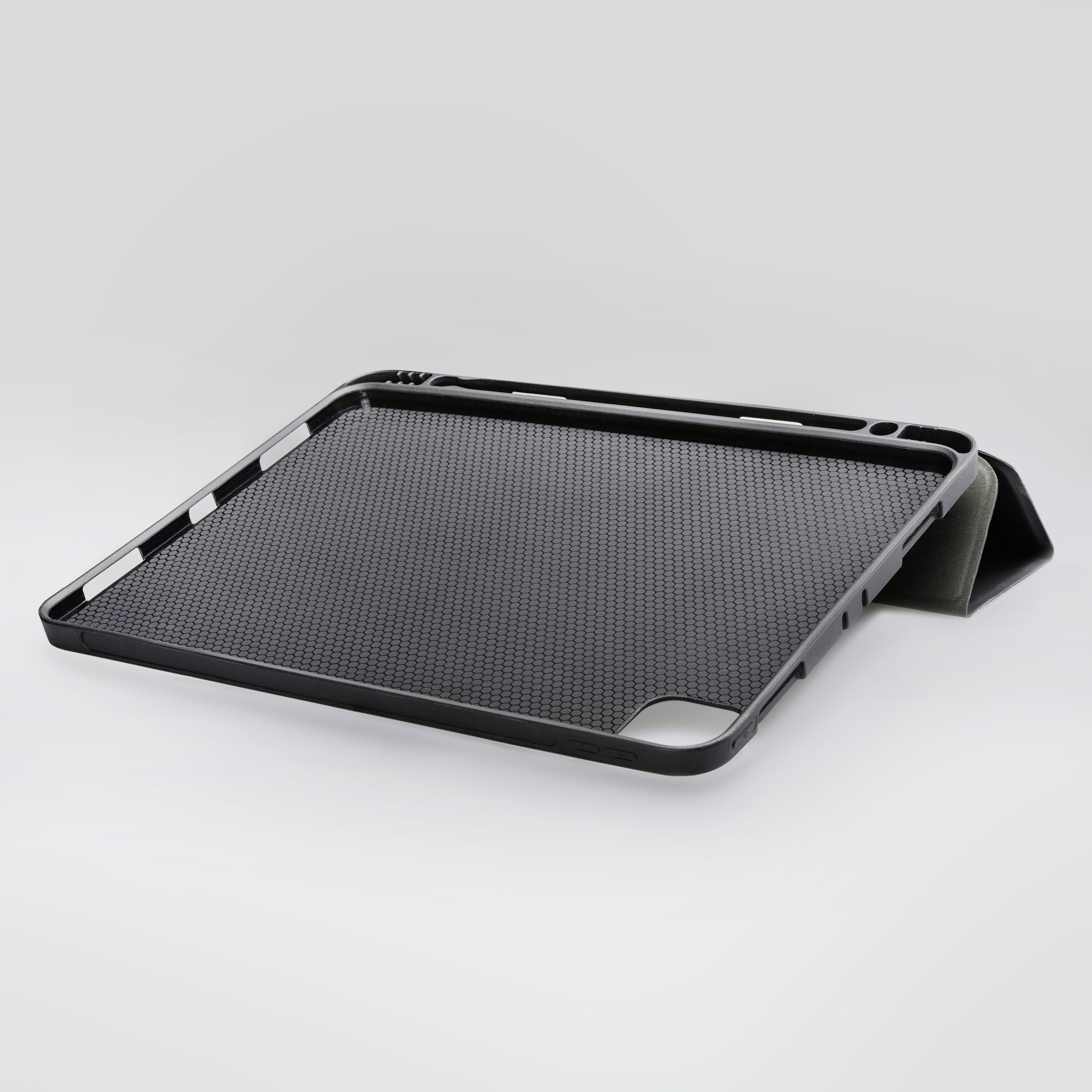 De binnenkant is bedekt met zacht microfiber om het scherm extra goed te beschermen. Ook kun je hier je (stylus) pen kwijt. Aan alle uitsparingen is gedacht. Je apparaat blijft volledig bedienbaar, oplaadbaar en ook kun je gewoon foto’s en video’s blijven maken.