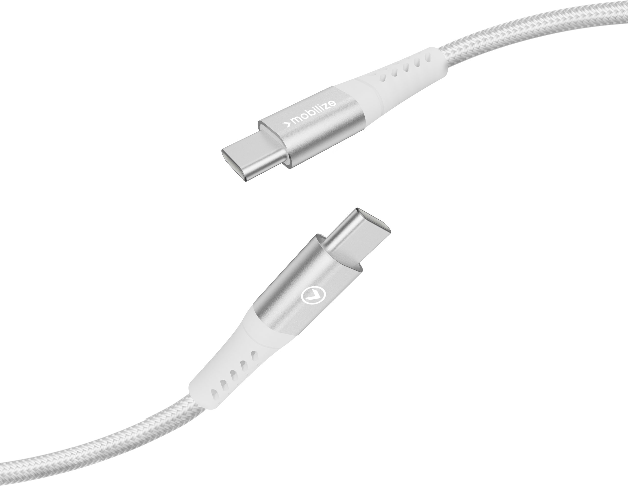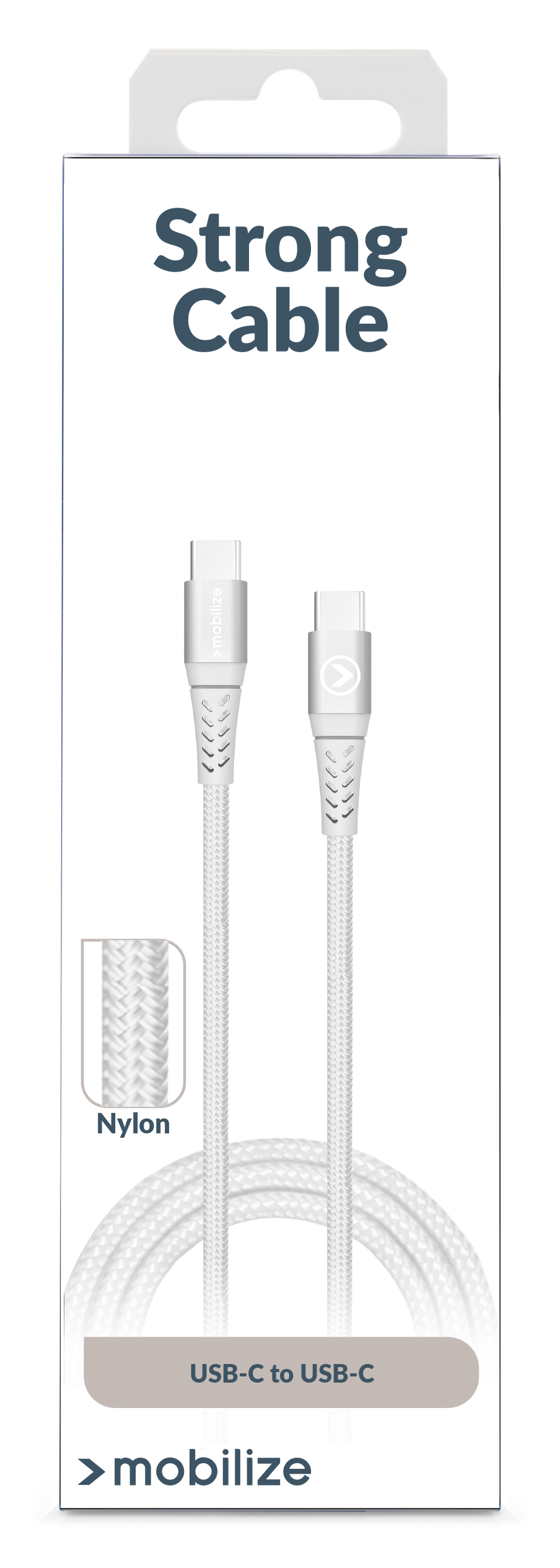 De kabel heeft een geweven patroon wat naast een mooie look ook extra stevigheid aan de kabel geeft waardoor het niet snel kapot zal gaan of in de knoop zal raken. De connectoren zijn gestroomlijnd en hebben een trekontlasting, hierdoor zijn ze veel minder gevoelig voor breuken. Met de Mobilize Nylon Braided Charge/Sync USB-C to USB-C 100W kabel kunt u moeiteloos en snel jouw apparaat opladen of gegevens overzetten.