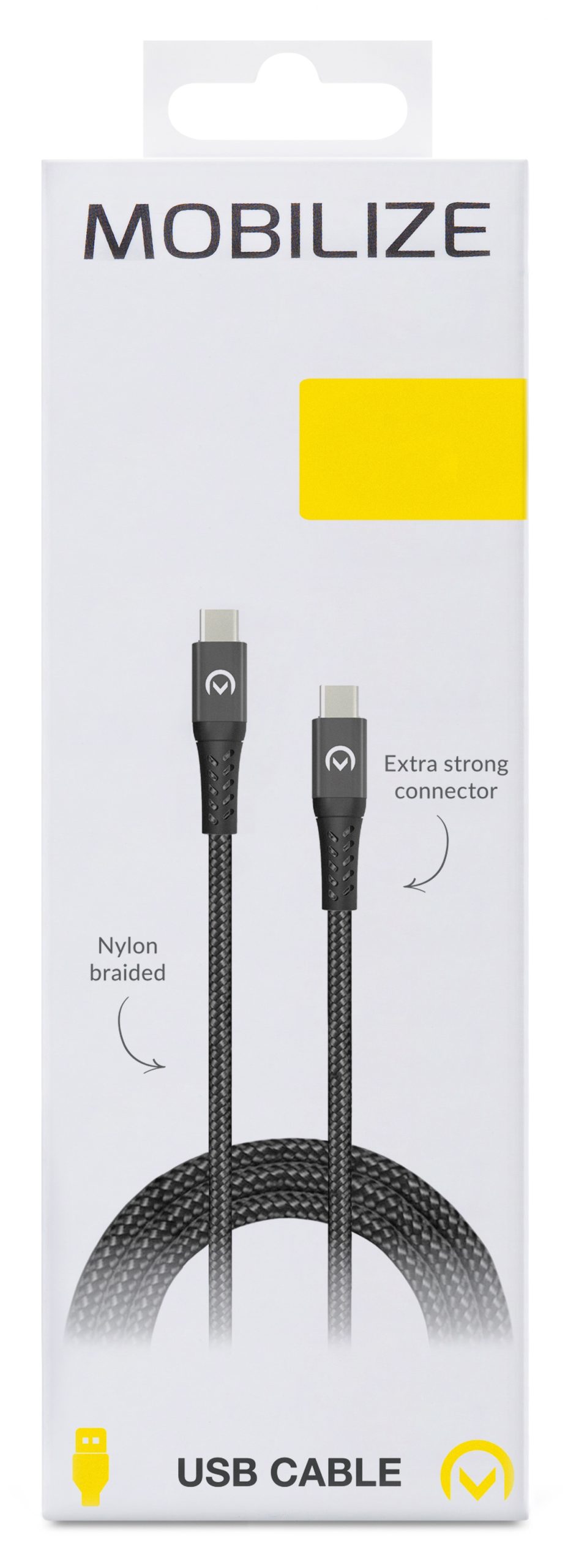 De kabel heeft een geweven patroon wat naast een mooie look ook extra stevigheid aan de kabel geeft waardoor het niet snel kapot zal gaan of in de knoop zal raken. De connectoren zijn gestroomlijnd en hebben een trekontlasting, hierdoor zijn ze veel minder gevoelig voor breuken. Met de Mobilize Nylon Braided Charge/Sync USB-C to USB-C 100W kabel kunt u moeiteloos en snel jouw apparaat opladen of gegevens overzetten.