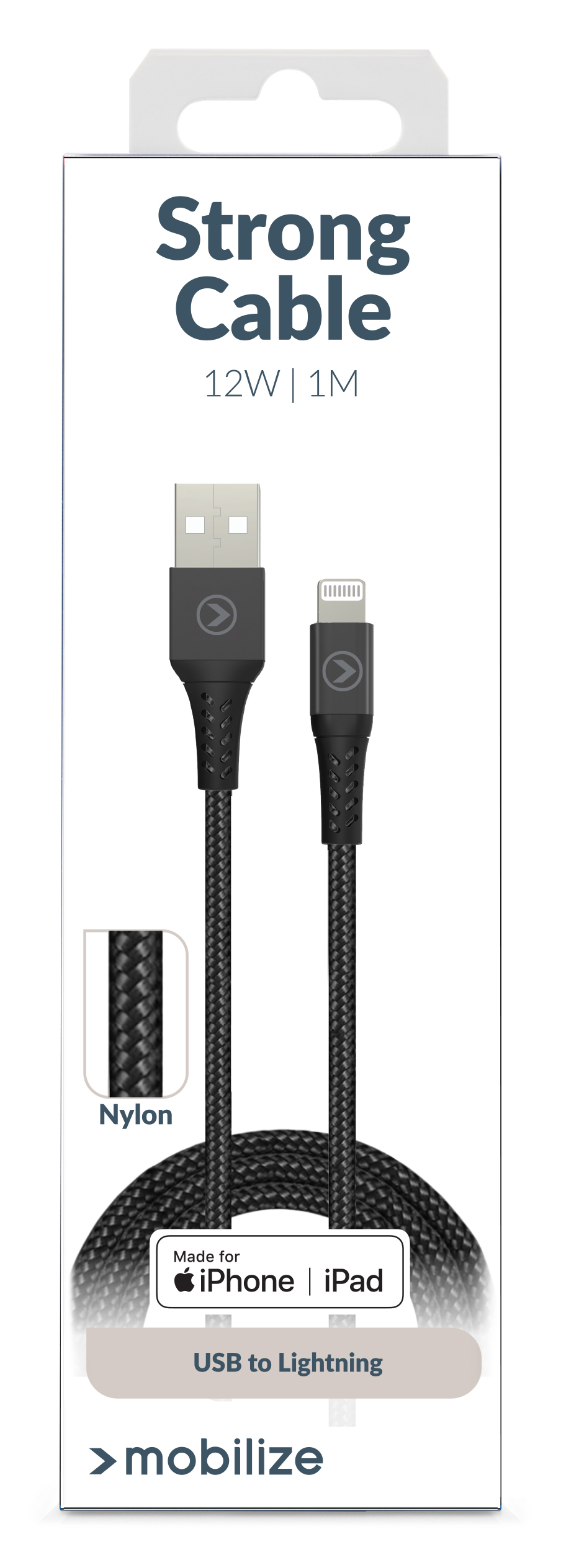 Mobilize Strong Nylon Cable Usb To Apple Mfi Lightning 1M. 12W Black